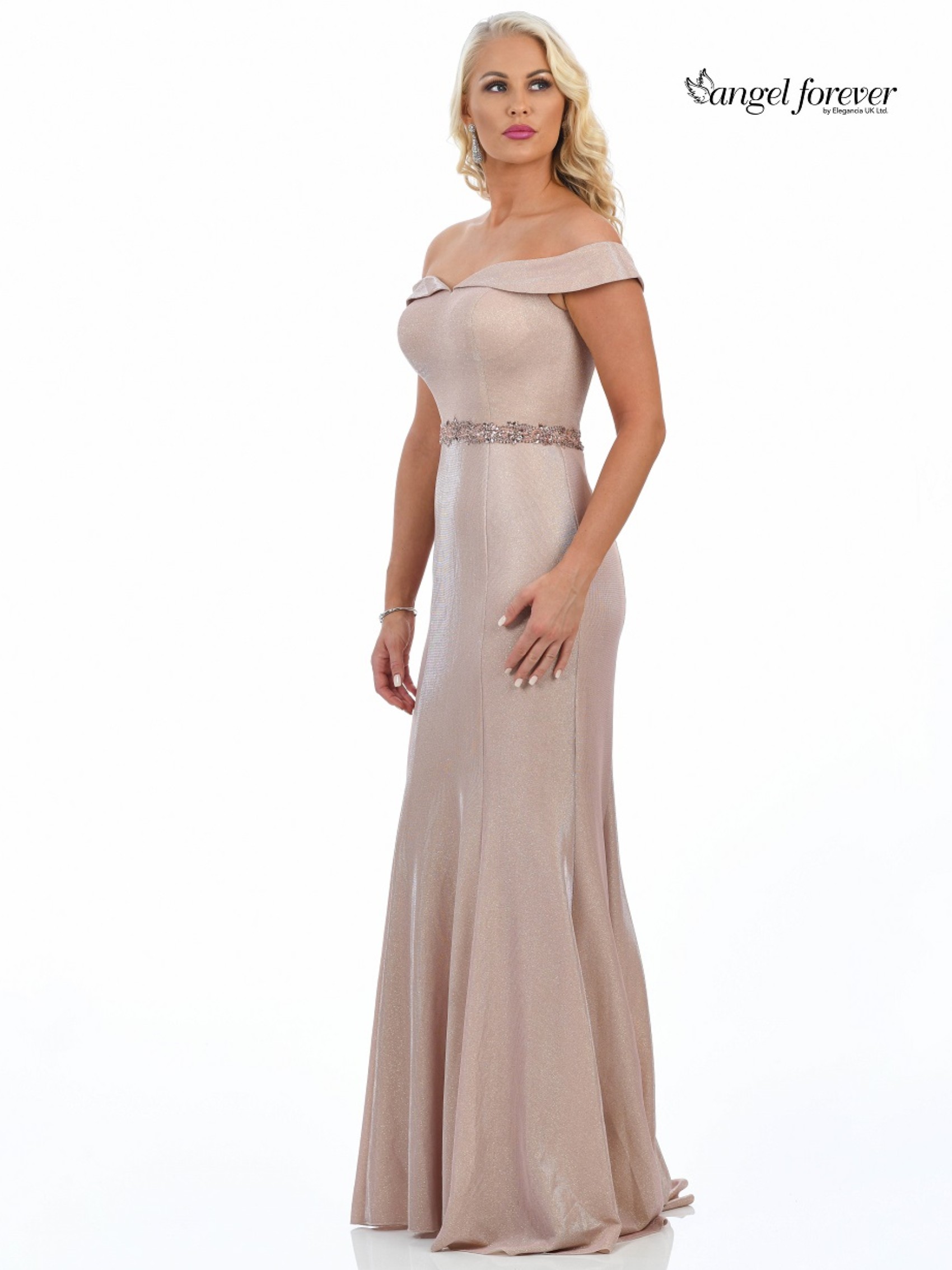 Angel Forever Shimmer Fabric Off The Shoulder Prom Dress (Rose Gold) | AF20467-ROSE