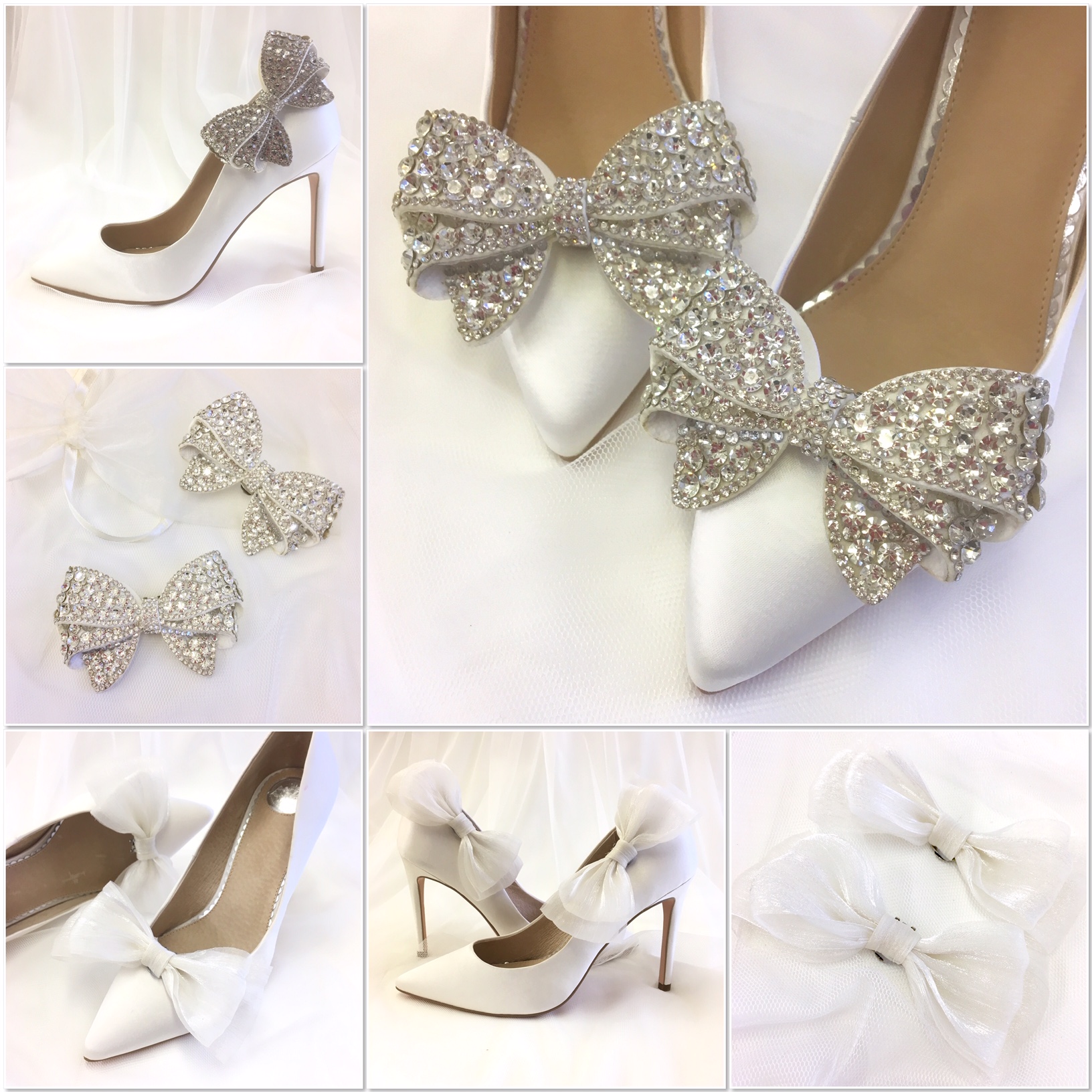 Bow shoe clip designs in Satin are ideal for the classic bride. For simple understated elegance, we recommend these. Either the Rowan bow in satin or the Zavior shoe clips can enhance a plain shoe and give you a sophisticated bridal look. Wear them any way you like, on the front, side or straps, they look great any way you choose.