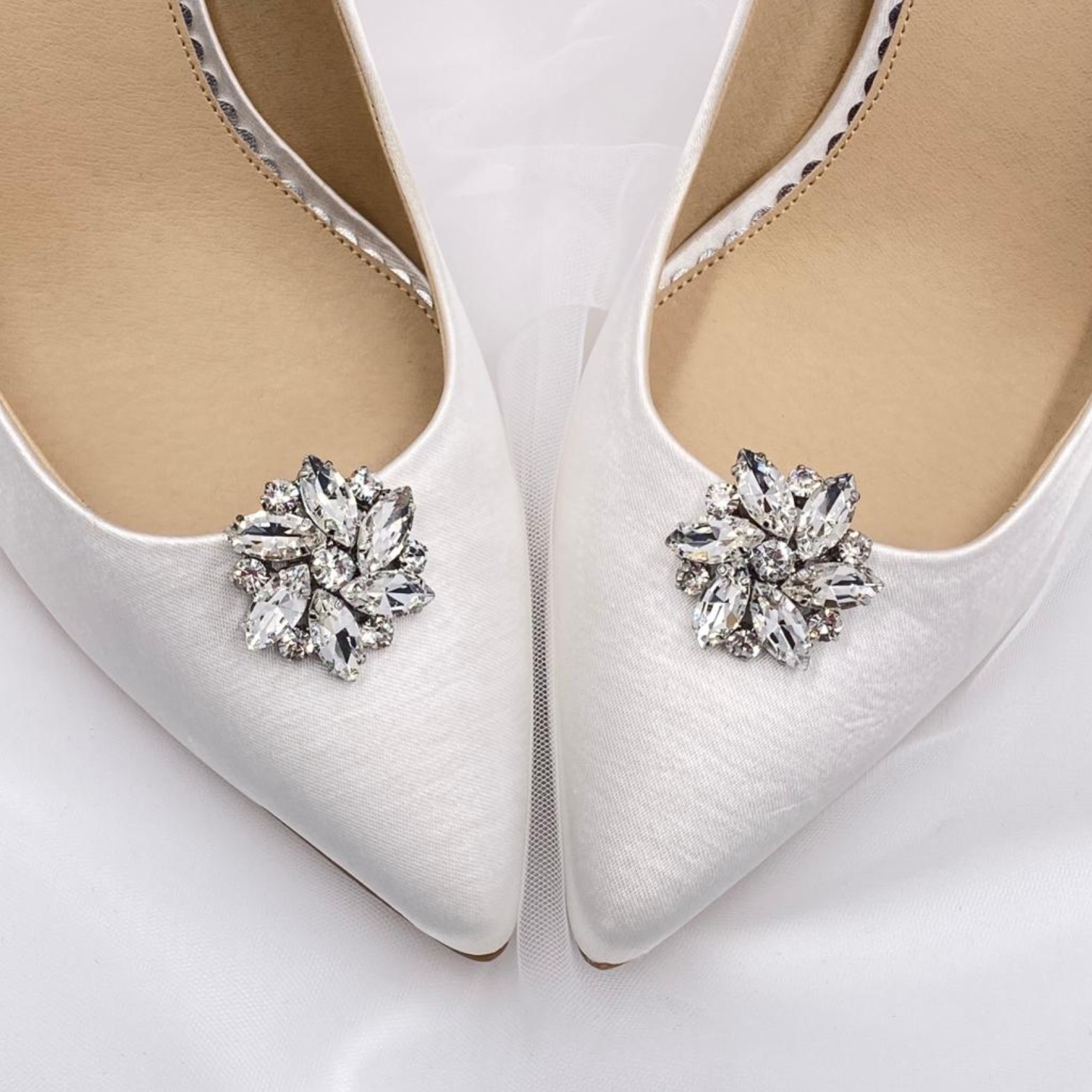 The clips are very beautiful and are a wonderful addition to my bridal shoes. I can't wait to wear them on my wedding day.