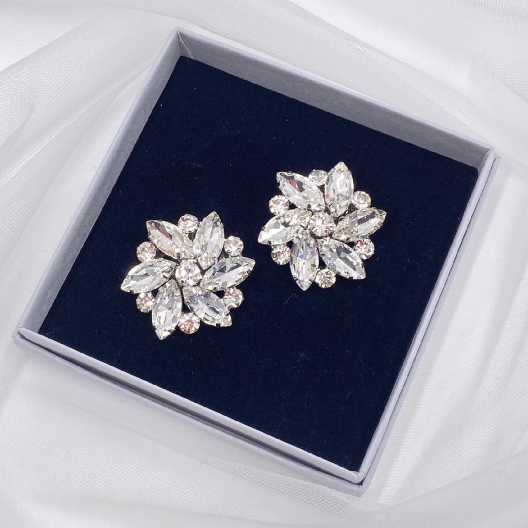 Pretty silver diamante flower shoe clips made up of glistening marquise and solitaire crystals. A dainty yet sparkly addition, this pretty pair will instantly transform your wedding or occasion shoes. Also available in sapphire!