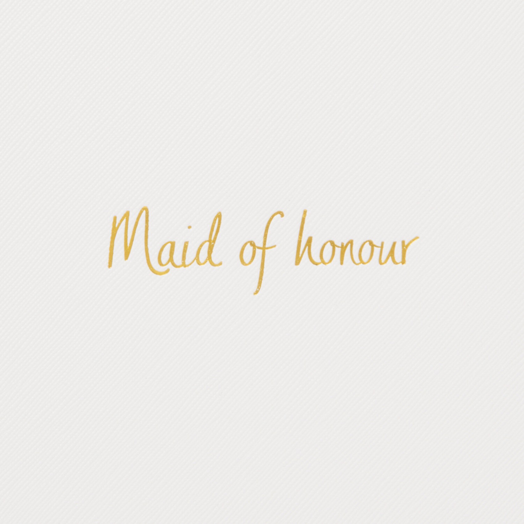 This gorgeous white 'Maid of Honour' pouch is finished with metallic gold lettering and a gold tone zip closure. A lovely keepsake as well as a little handy clutch that they can keep close on the special day.