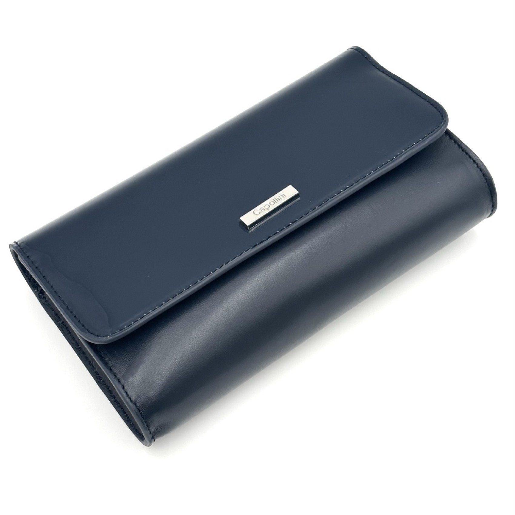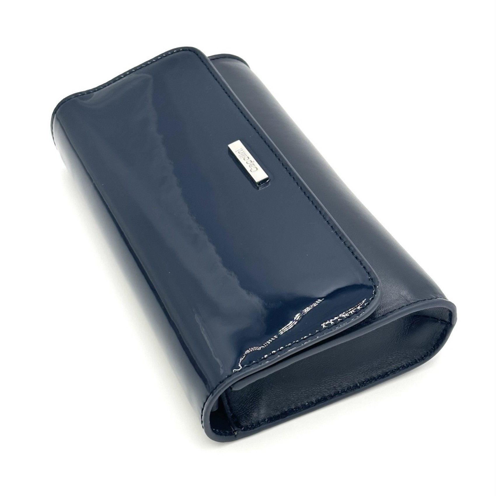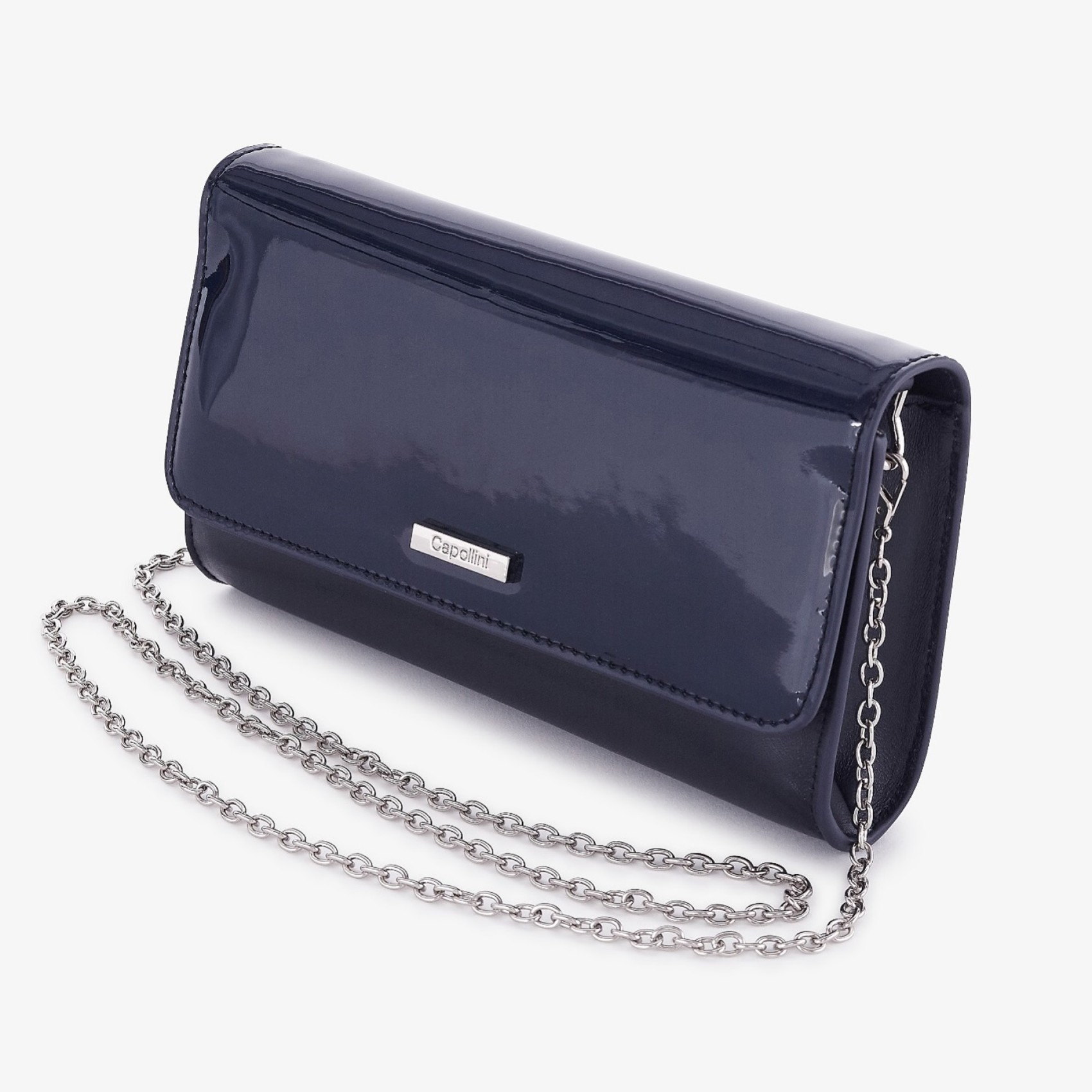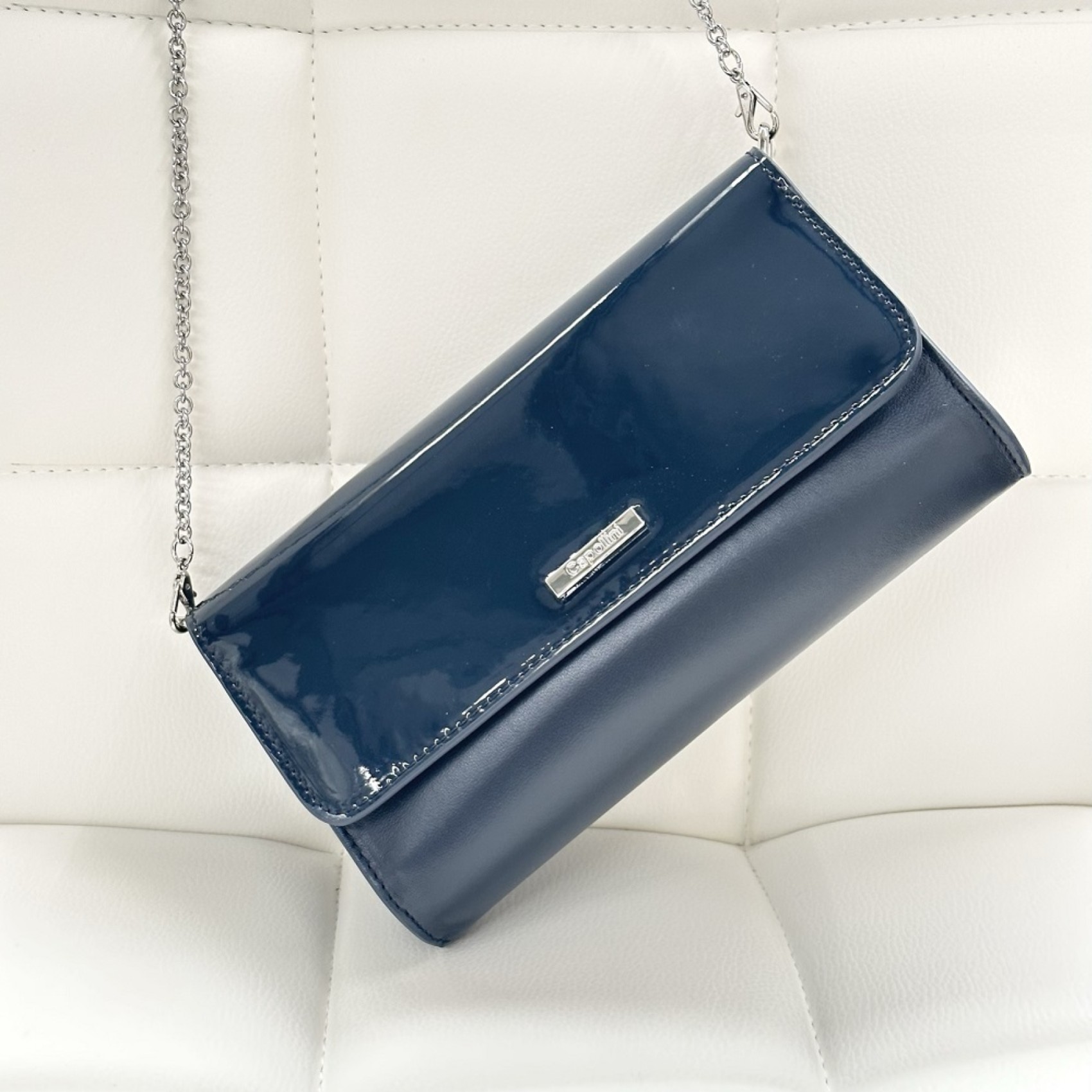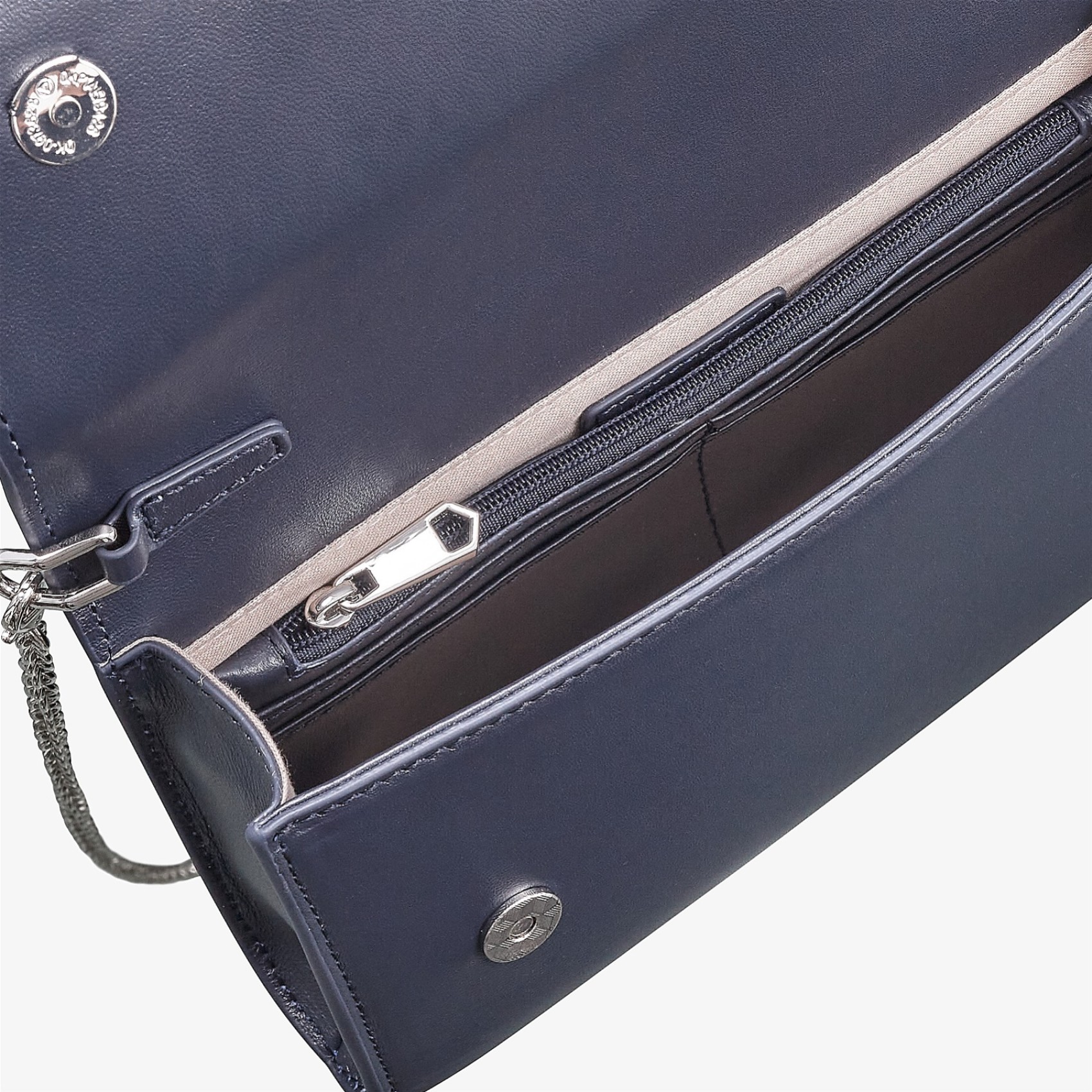 Handcrafted from dark navy leather this timeless handbag features a soft magnetic closure, beautifully lined with a large zip-able pouch pocket and an open pocket inside. Carry as a traditional clutch bag or use the long detachable shoulder chain for hands-free wear! Finished with the Capollini mark of approval.
