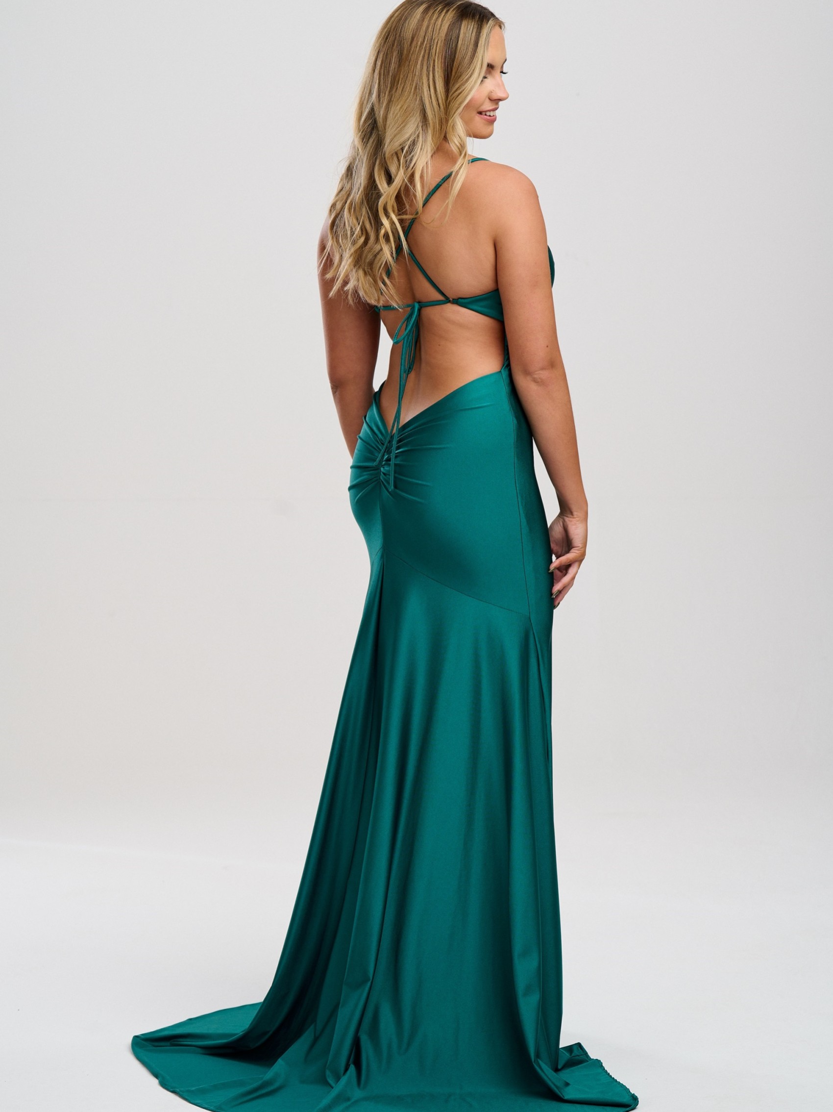 Linzi Jay Cowl Neck Backless Stretch Satin Prom Dress with Train | PM103