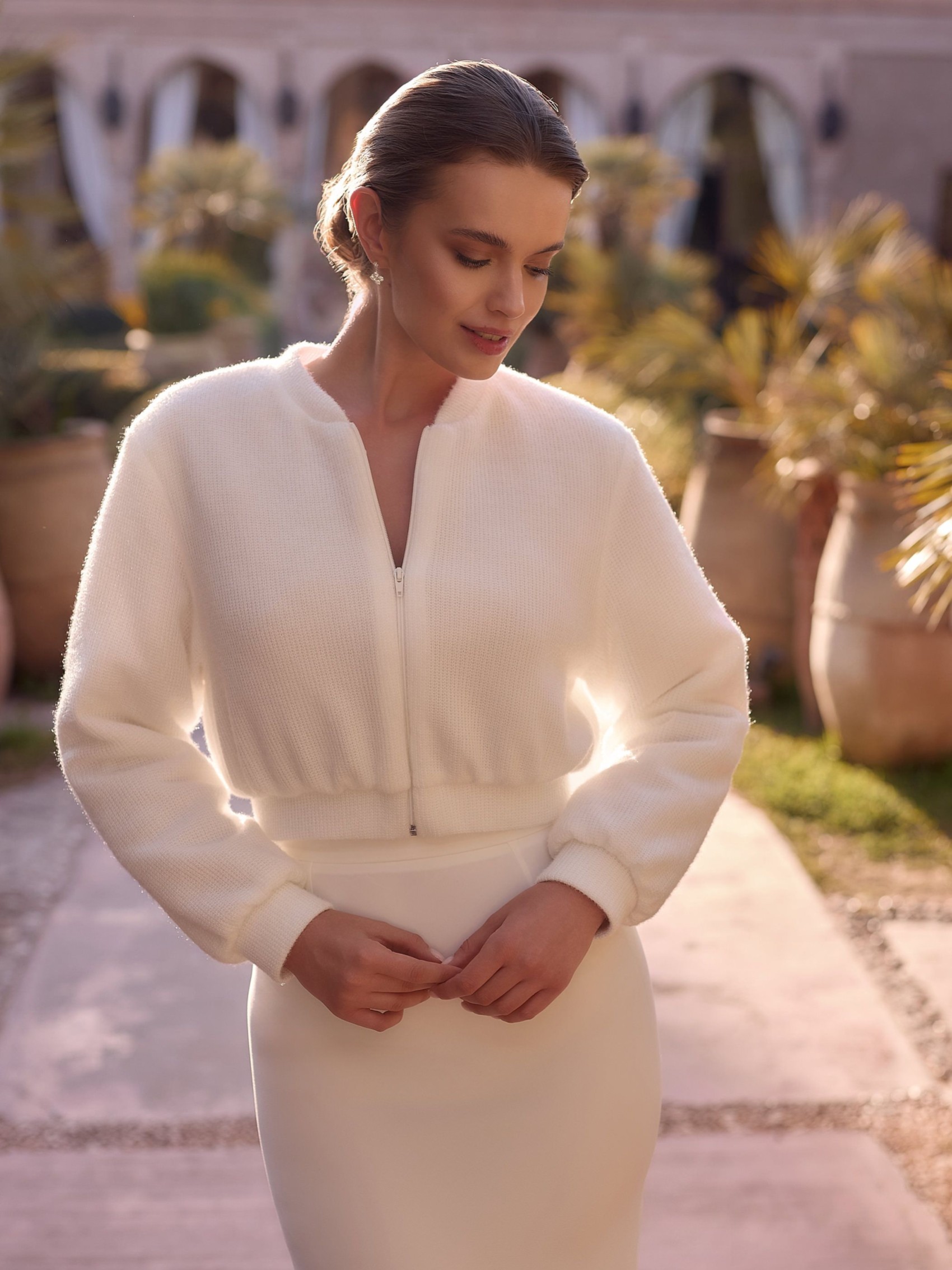 Bianco Ivory Cashmere Effect Knitted Bridal Jacket E497 | E497