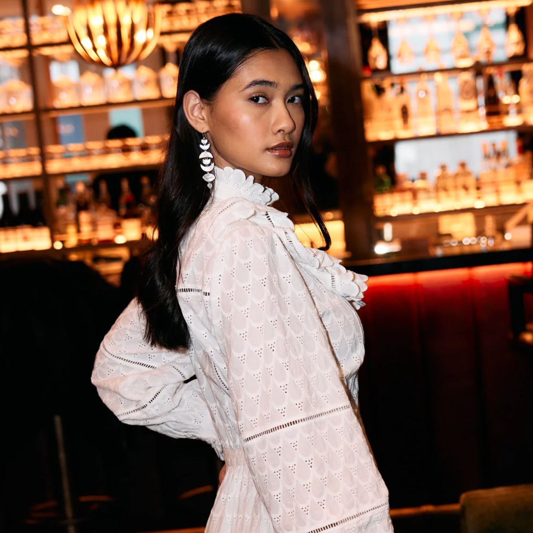 Freya Rose Warrioress Silver Mother of Pearl Moon Drop Earrings | WARRIORESSSIL-FR