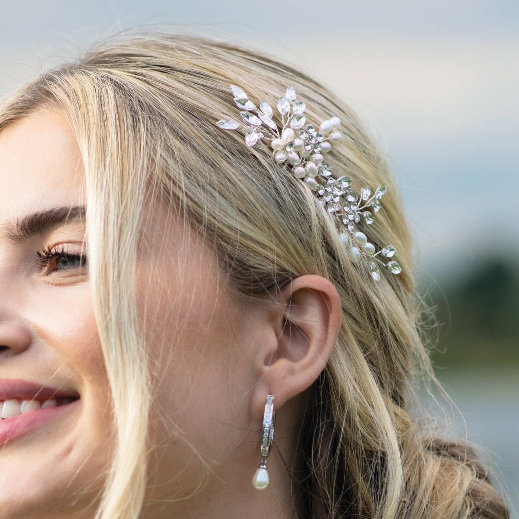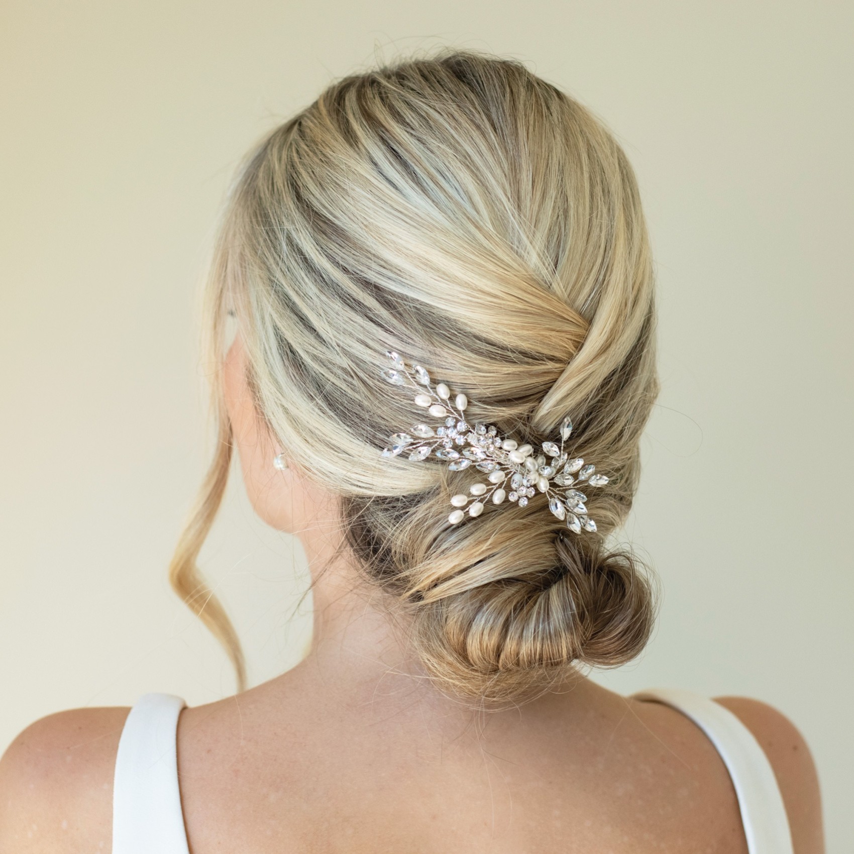 A sophisticated silver wedding hair comb in a delicate spray design. Beautifully made with cut solitaire and marquise crystals combined with shimmering ivory pearls in a gorgeous leafy pattern. Dainty and divine this pearl and crystal hair comb is the perfect finishing touch for brides and bridesmaids alike.