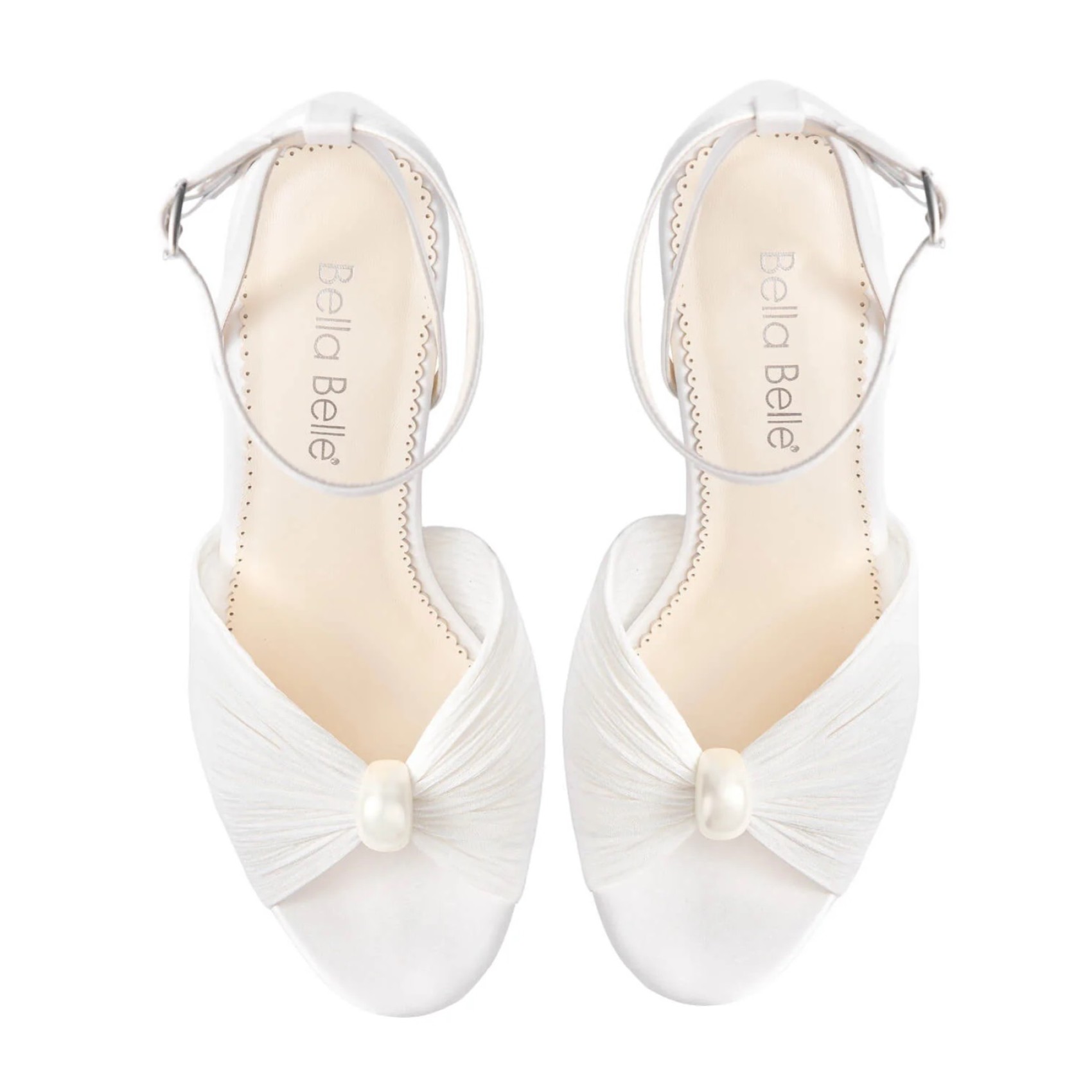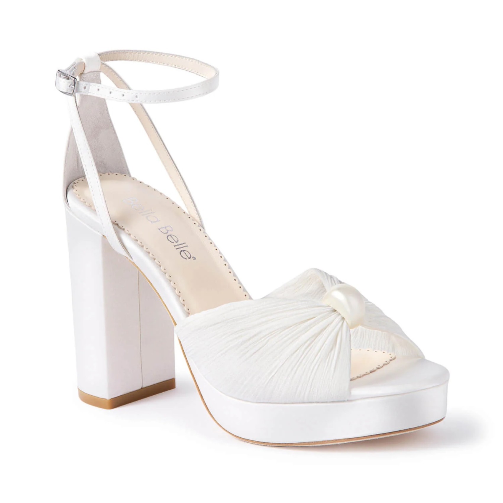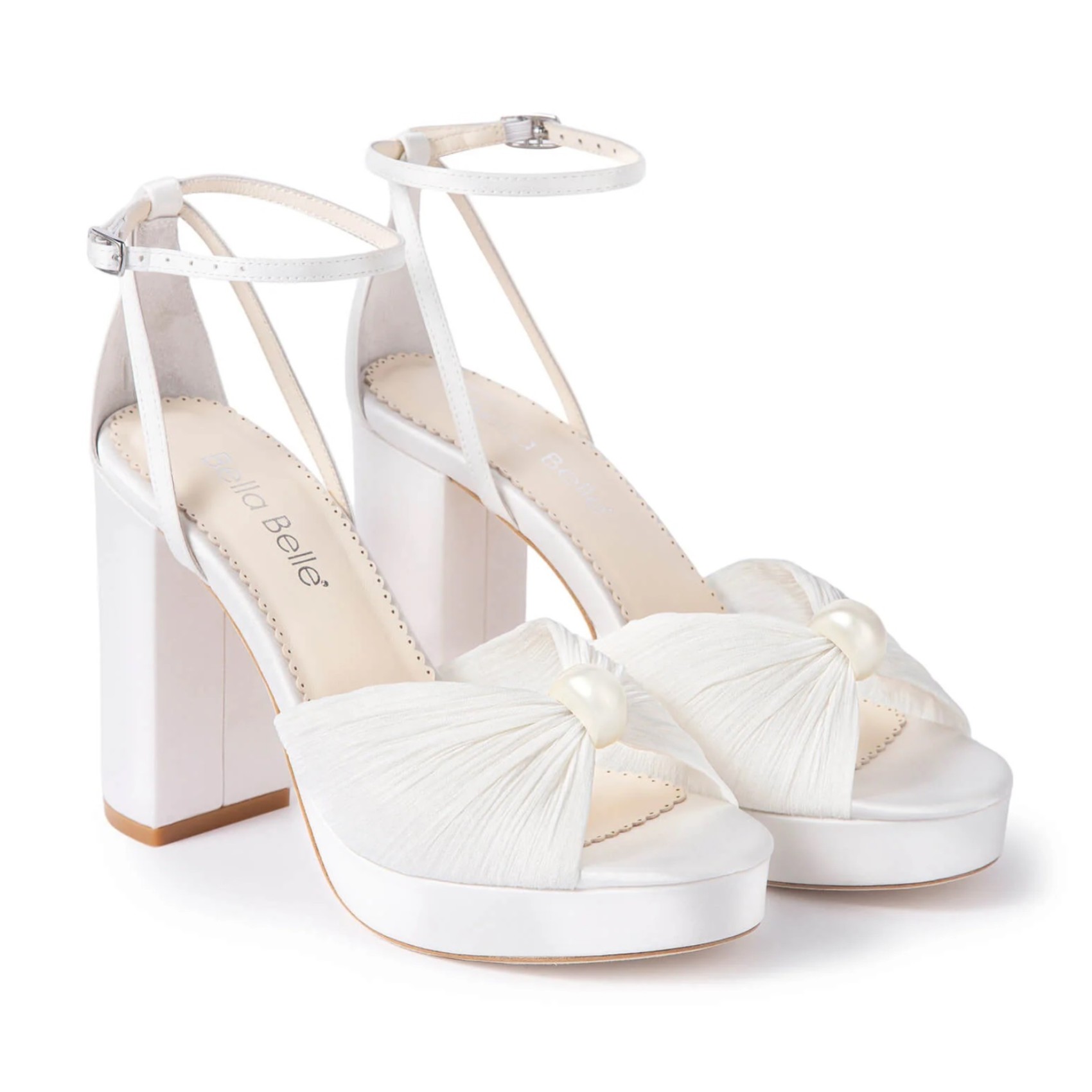 Bella Belle Lexi Ivory Pearl Tulle Block Heel Platform Sandals | LEXI-BB