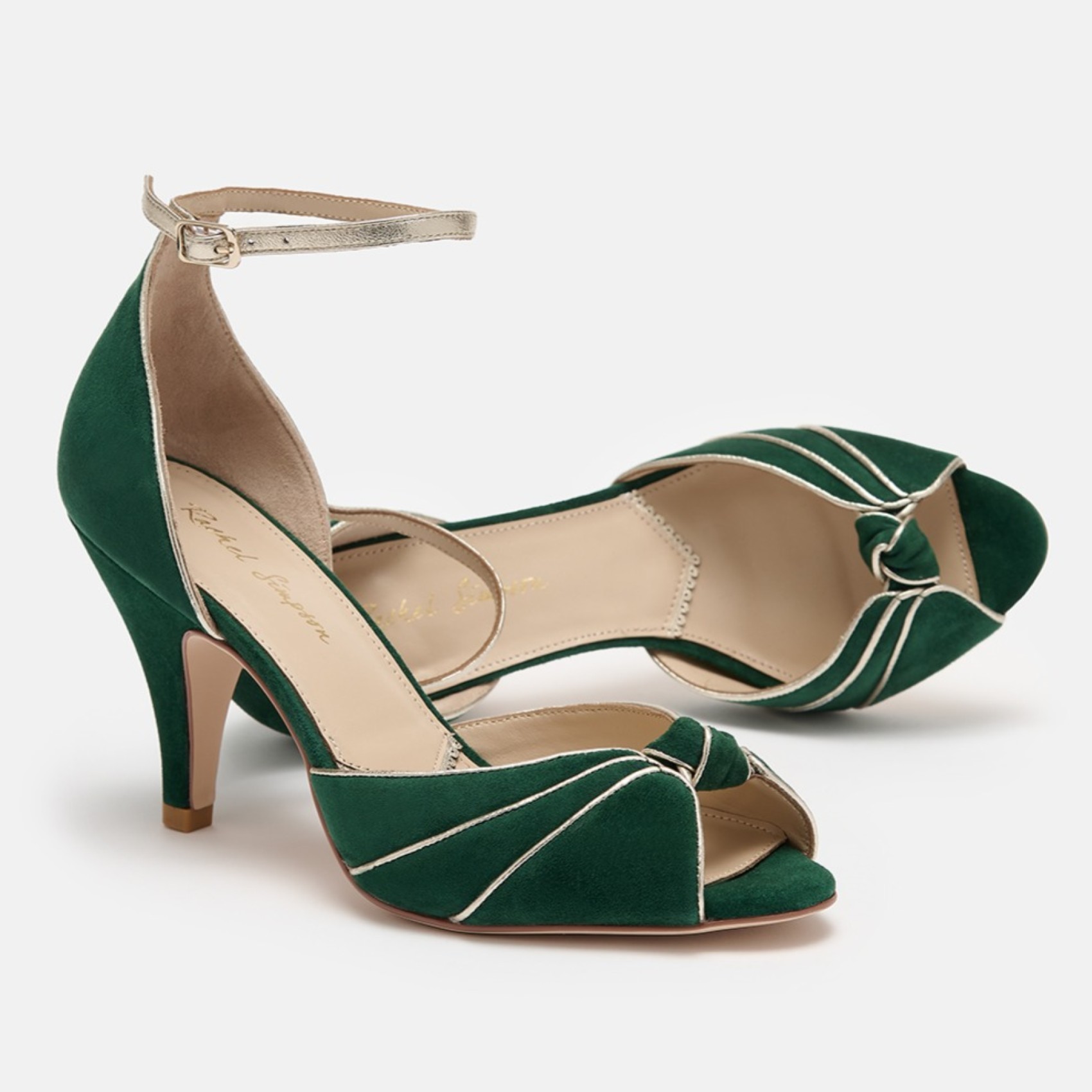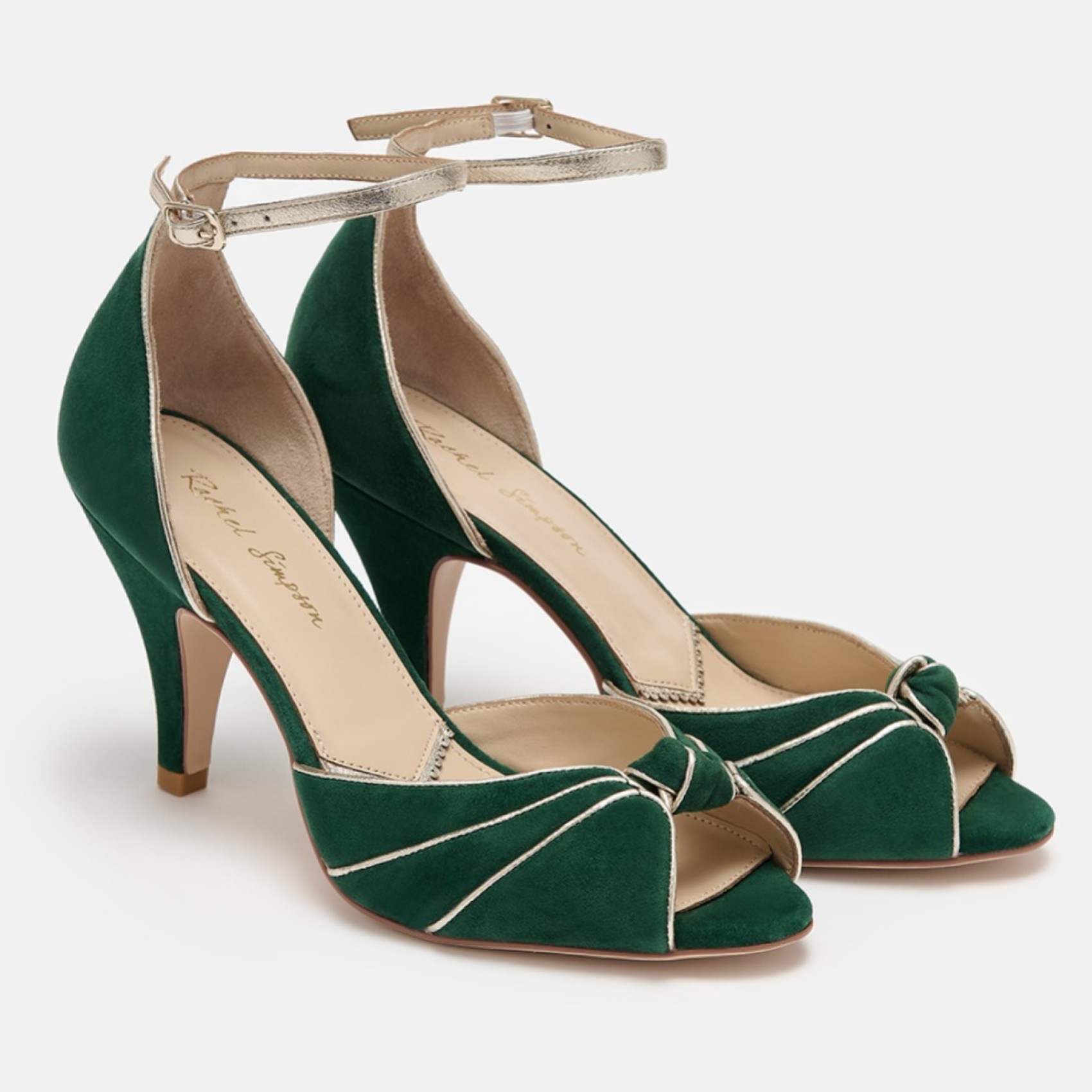 Rachel Simpson Olivia Forest Green Suede Knot Peep Toe Heeled Sandals | OLIVIAIGRN-RS