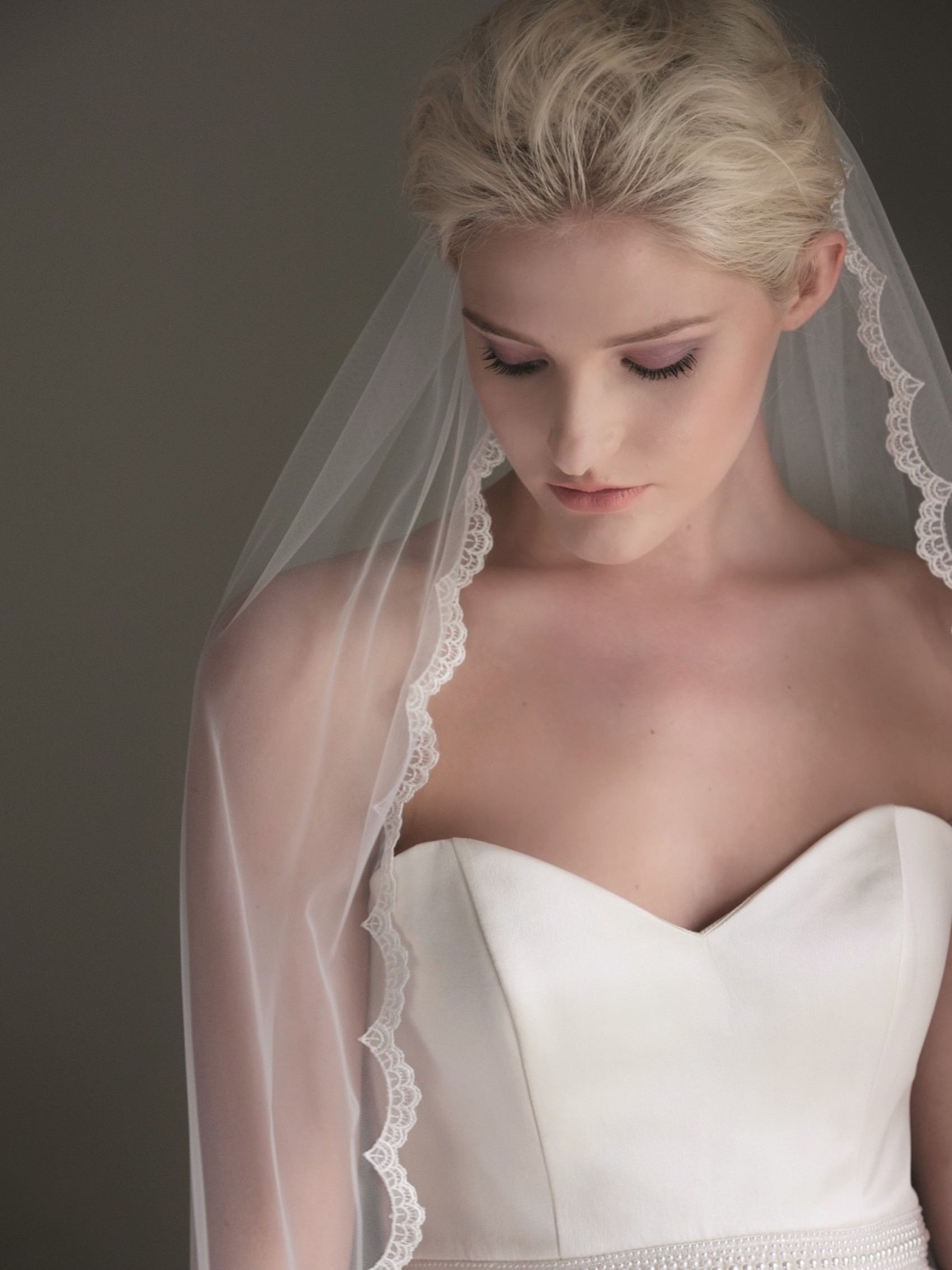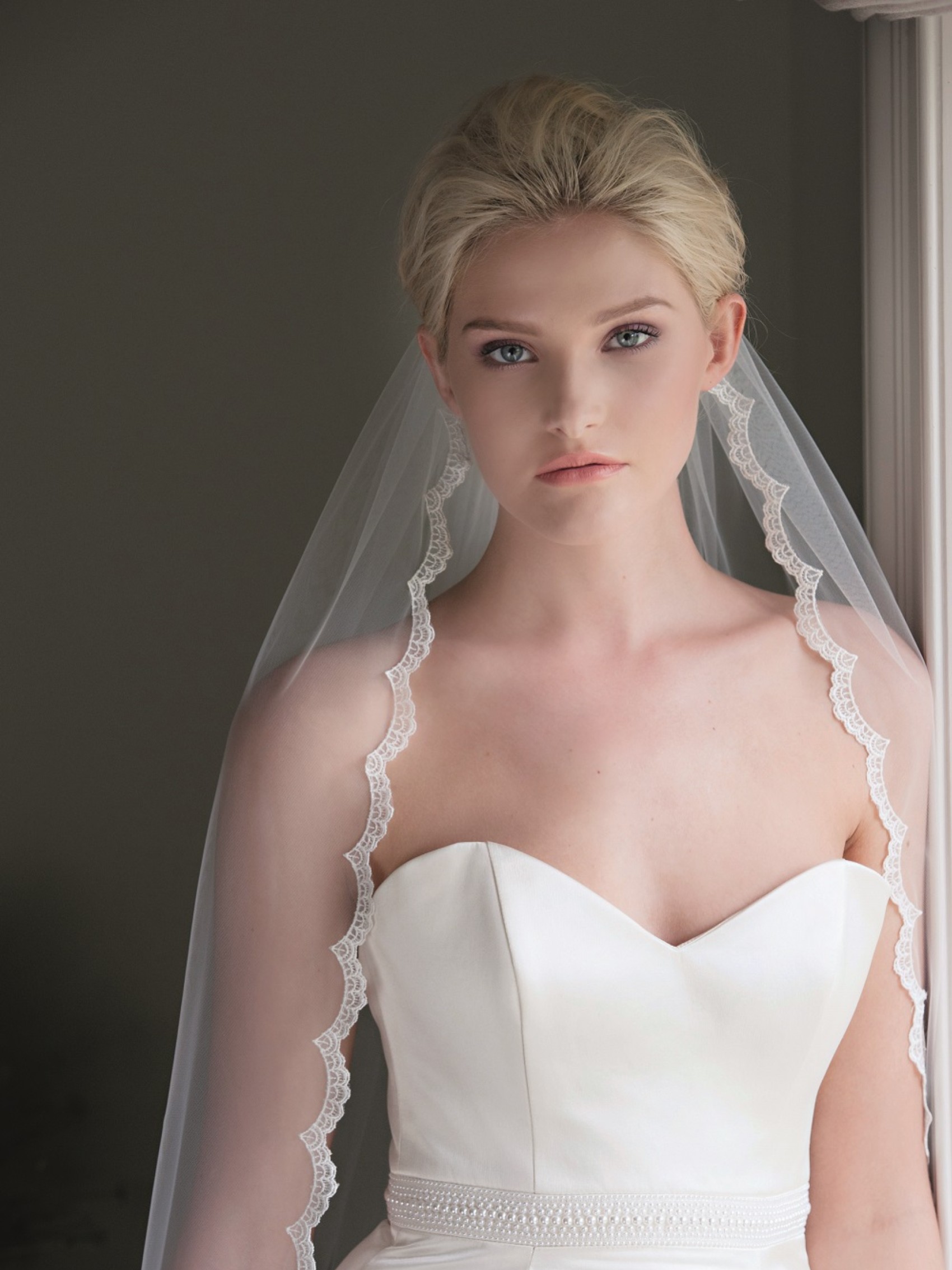 Beauty is a really elegant, delicate single tier chapel length veil crafted from the softest Italian tulle, finished with a dainty scalloped lace edge. It is beauty in itself! Team with a classic satin or lace gown with a small train for the ultimate bridal look.