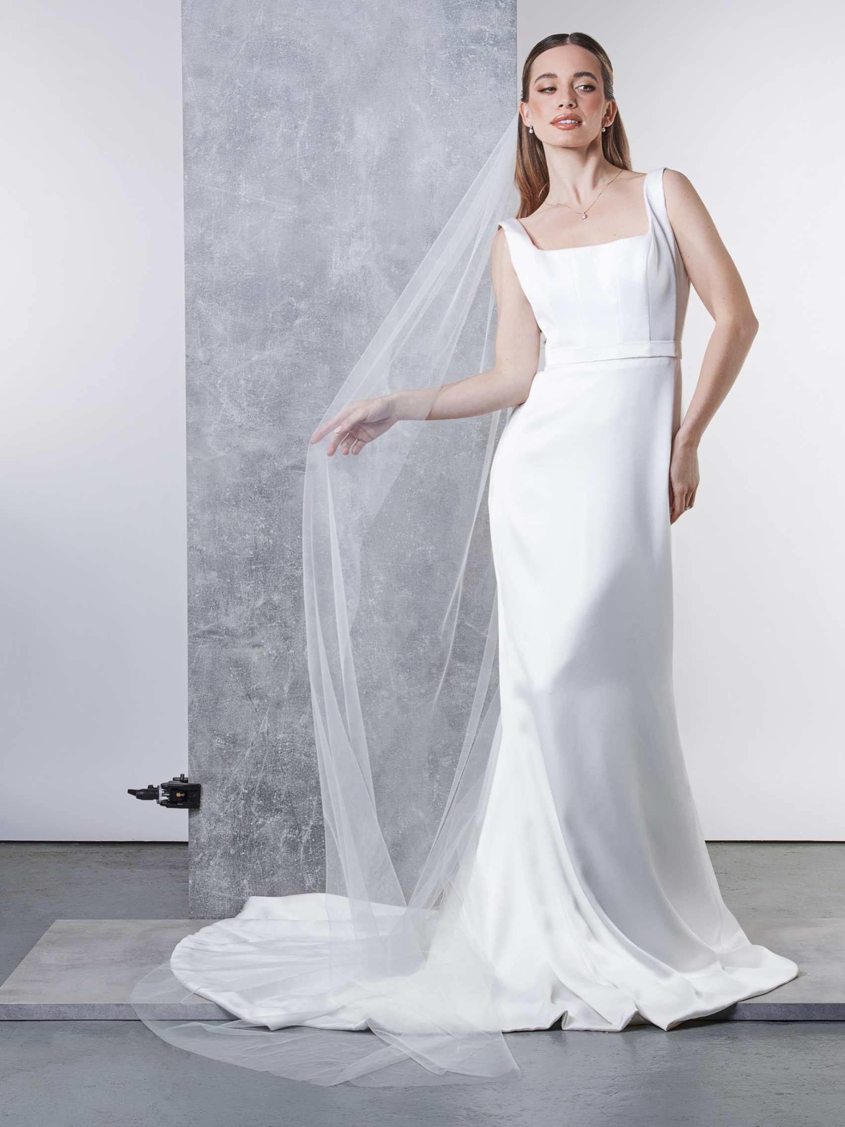 A perfectly plain single tier Italian tulle bridal veil with a raw, hand cut edge. With simple and elegant lines, this long wedding veil has a beautiful timeless feel.
