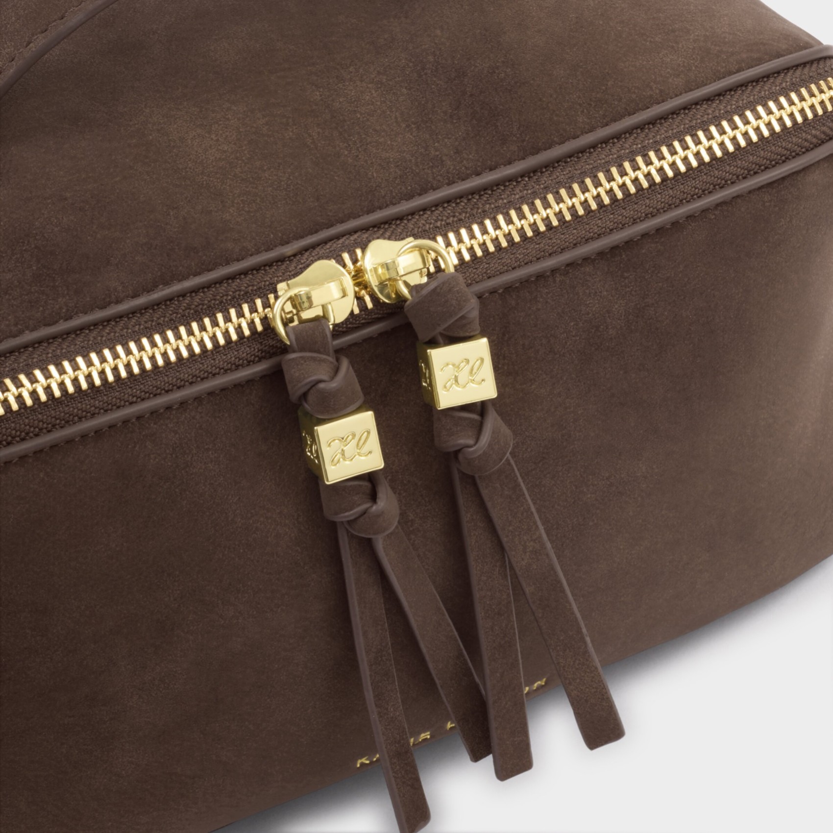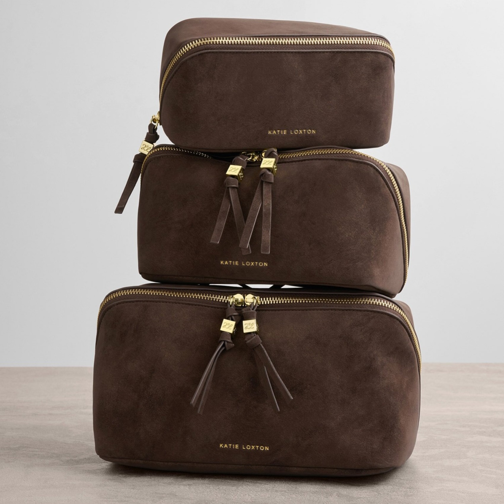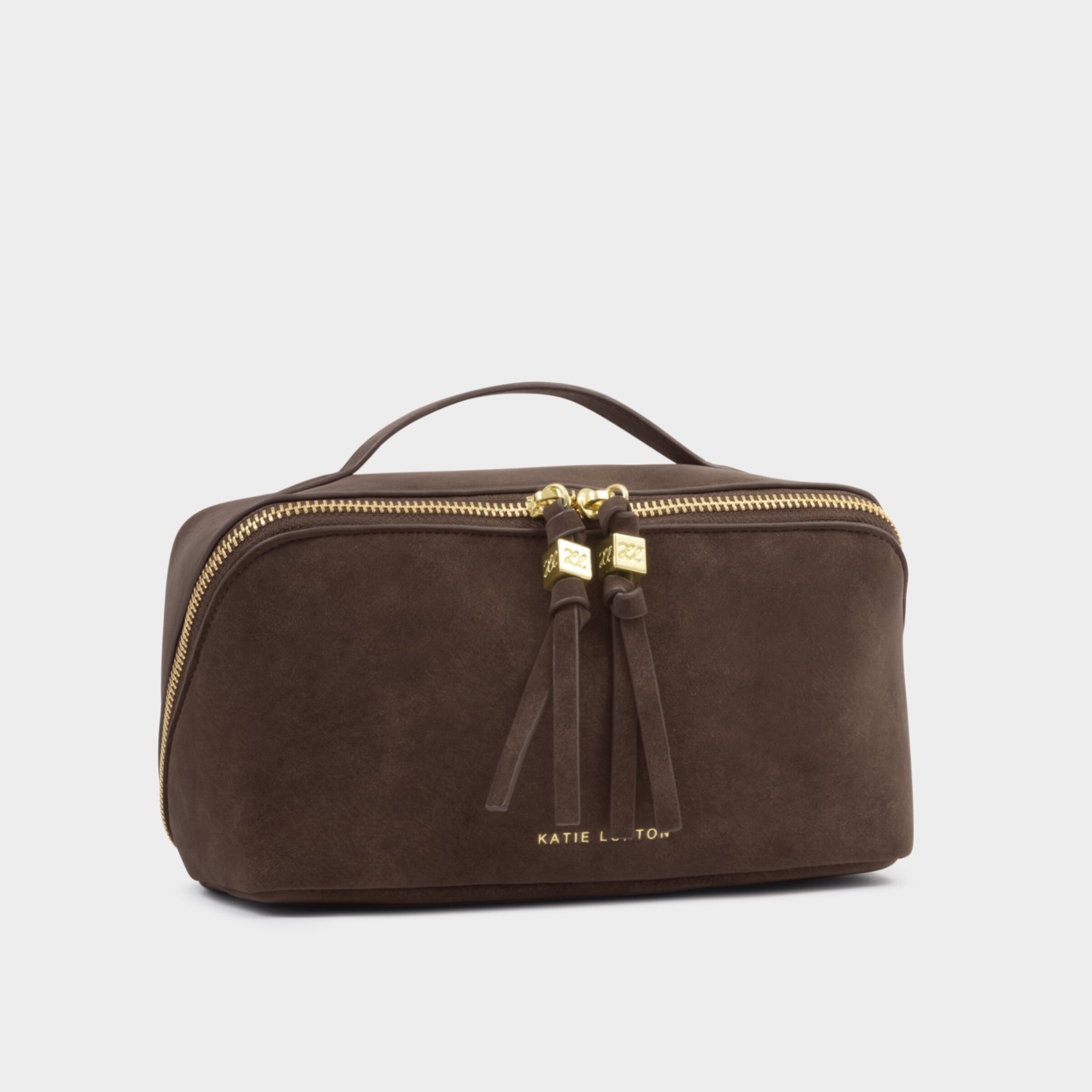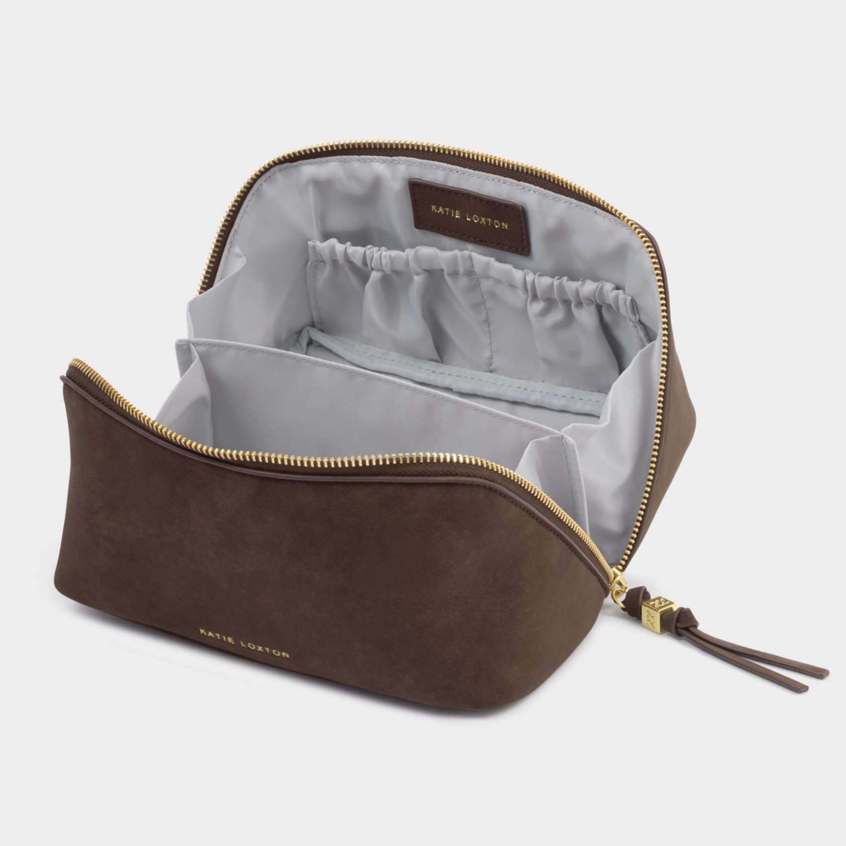Katie Loxton Soho Medium Chocolate Faux Suede Makeup and Wash Bag | KLB4522