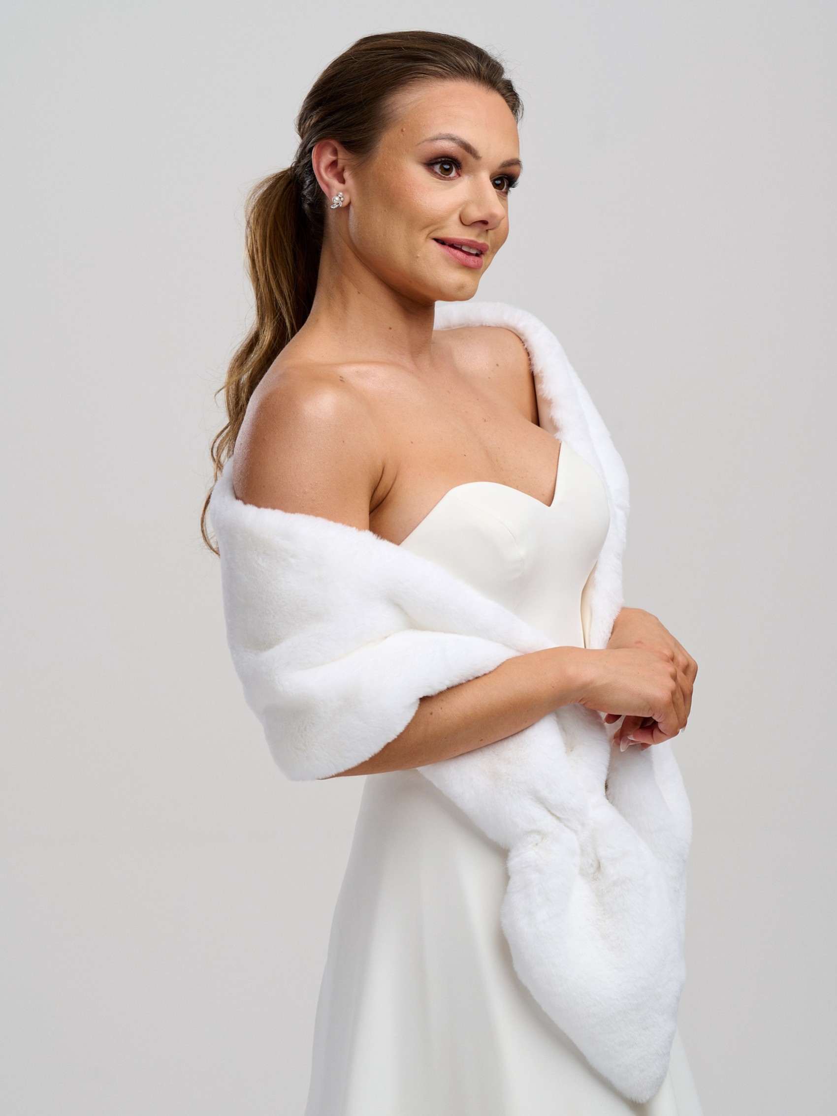 Designed in the iconic tail style, the sophisticated faux fur Vixen is perfect for brides and bridesmaids as a stylish wrap. Pure glamour! Handcrafted from luxurious vegan faux fur that's incredibly soft and plush, and is lined with matching silky satin.