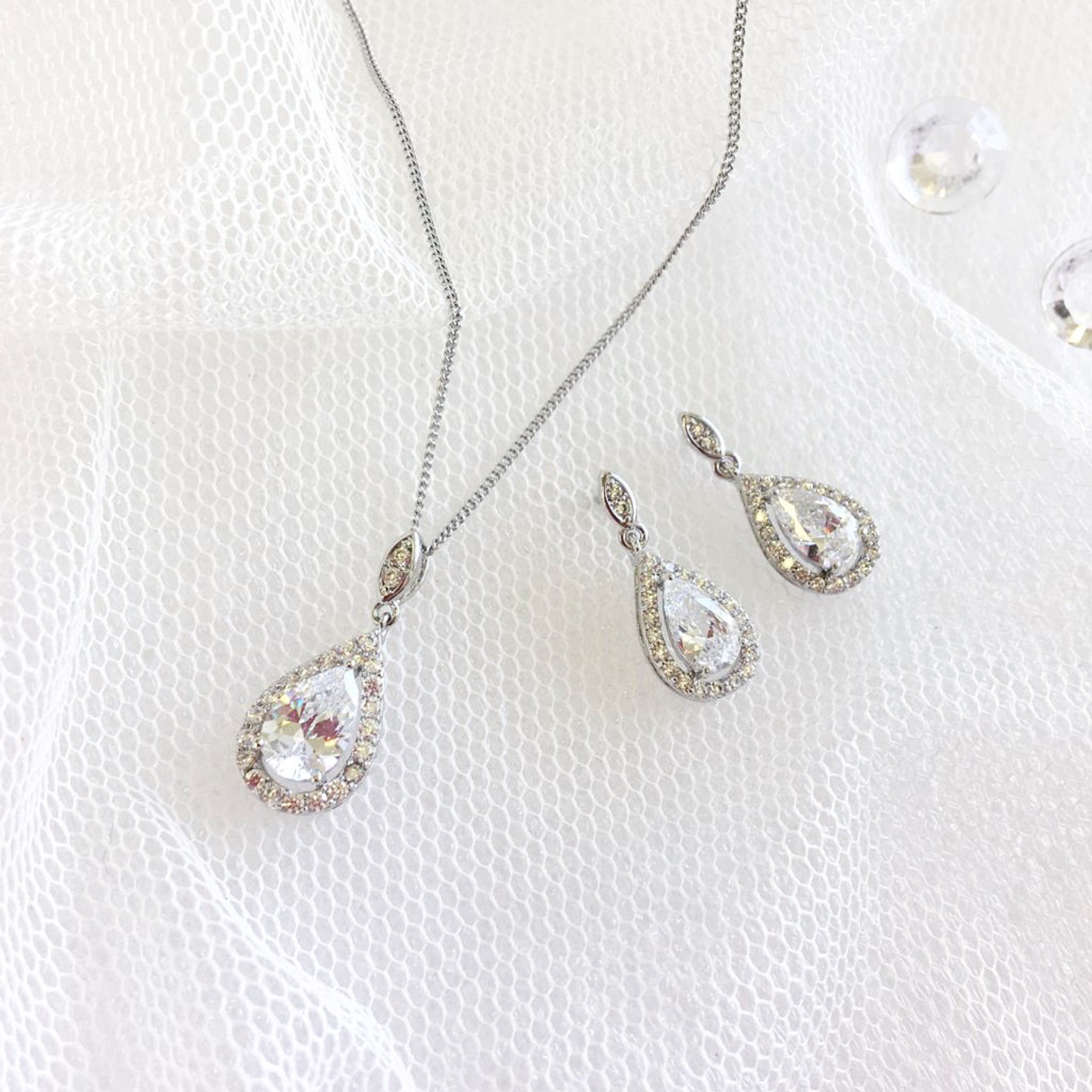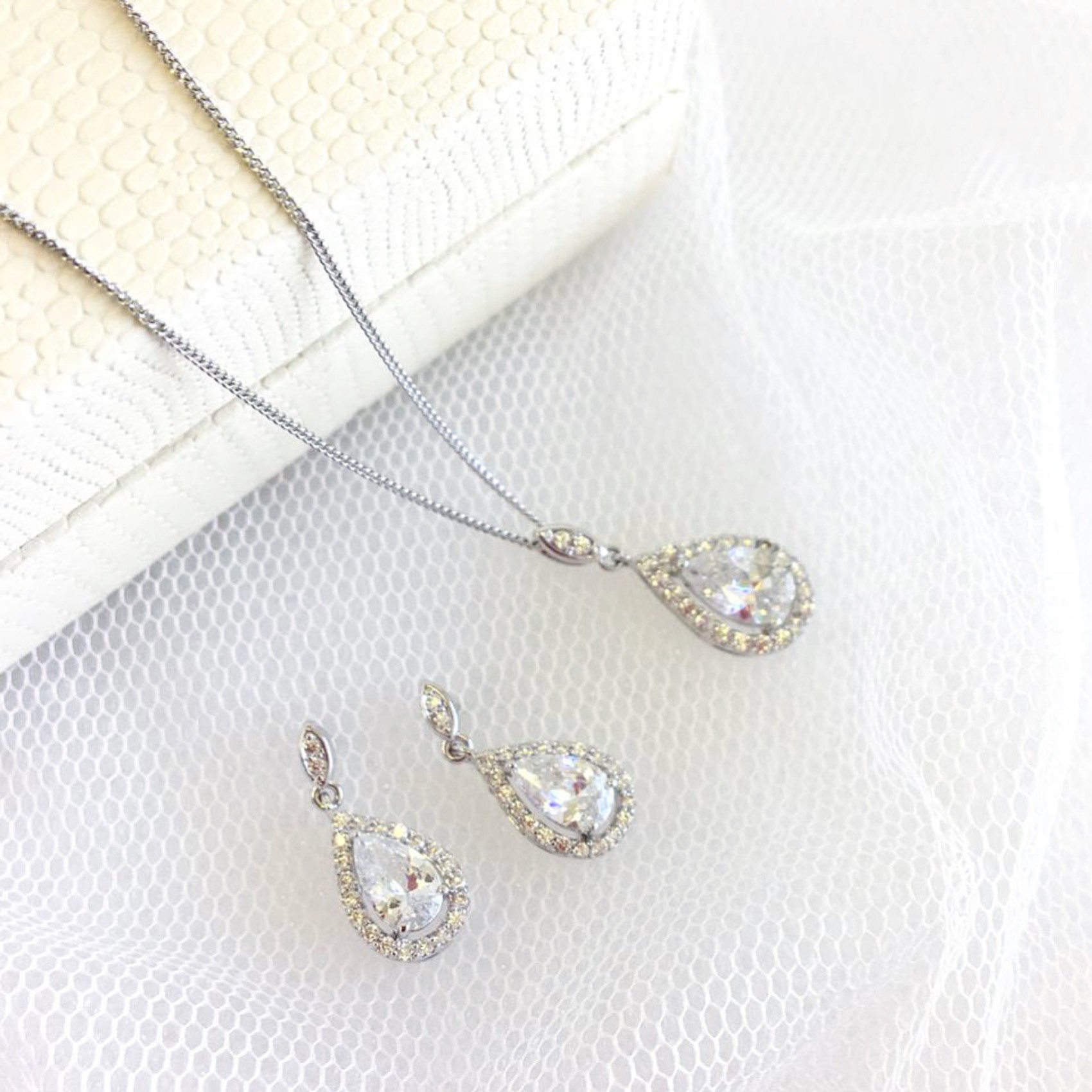 A beautiful and classic design the Belmont earrings are a firm favourite! Featuring twinkling faceted teardrop stones surrounded by tiny pave set crystals which suspends from a slender stud. These refined crystal drop earrings will complement any bridal style and the dainty design makes this pair perfect for bridesmaids too.