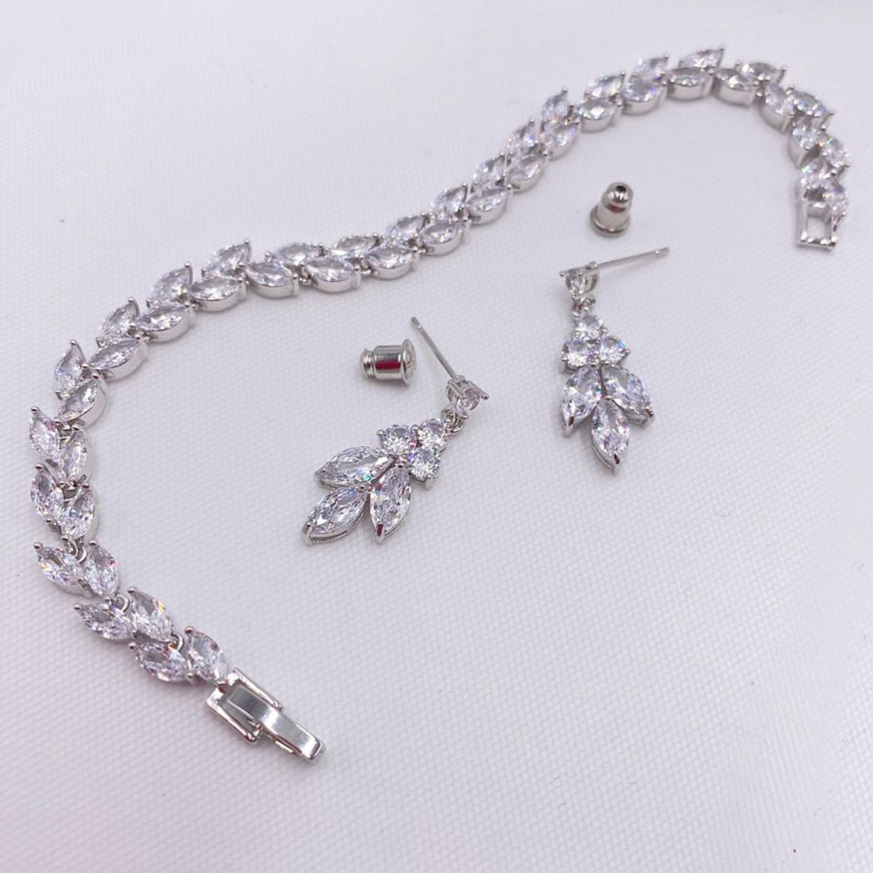 Pretty drop earrings embellished with marquise and solitaire cubic zirconia crystals. This dainty pair are perfect for brides and bridesmaid alike.