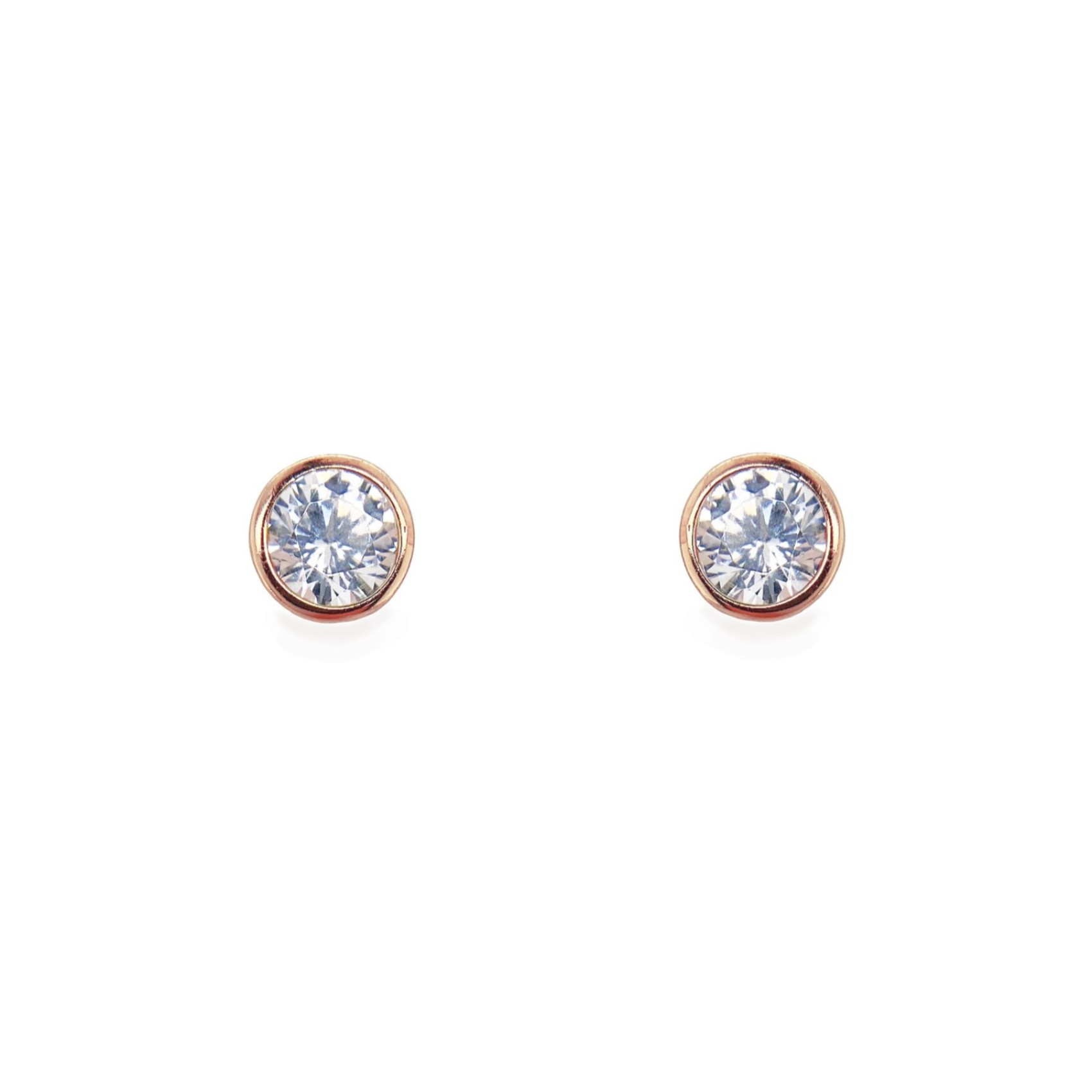 Clean cut rose gold crystal stud earrings for timeless appeal. Featuring set solitaire cubic zirconia crystals in a round brilliant cut, with a traditional earring post. This pretty pair make a gorgeous bridesmaid gift that can be worn time and time again after the big day.