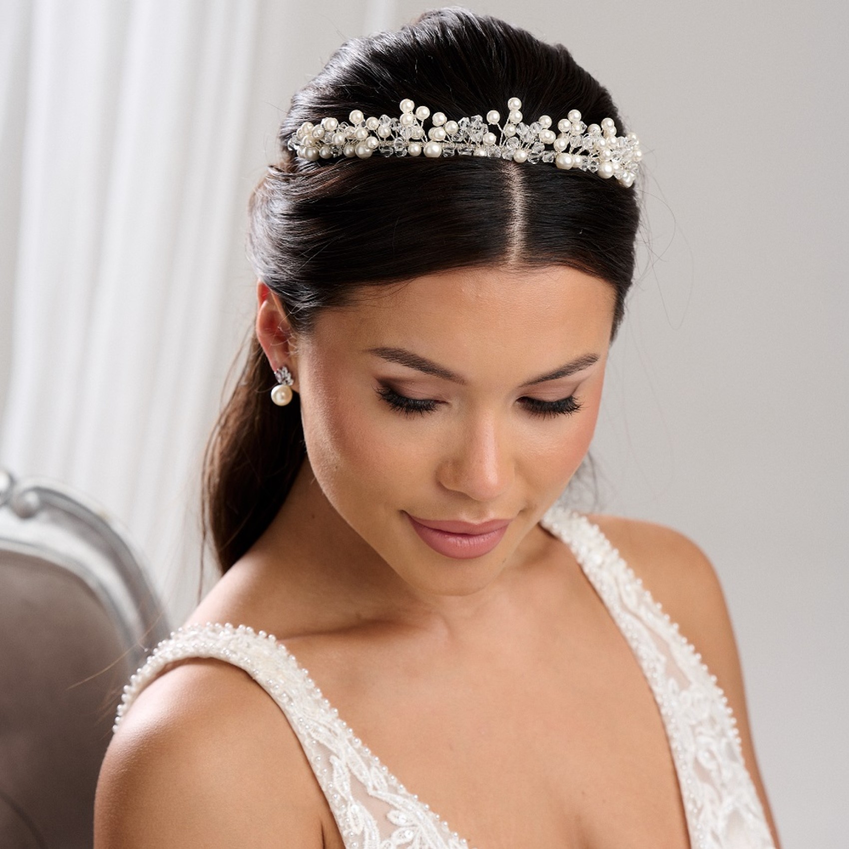 The perfect classic tiara made from sparkling crystals and Swarovski pearls which works equally well with both vintage and modern style wedding gowns.