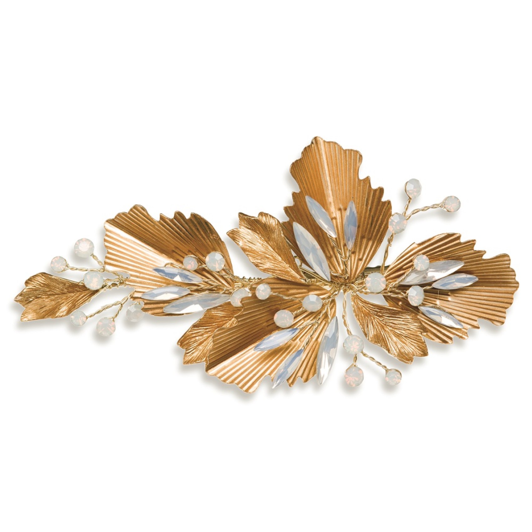 Ivory and Co Sunburst of Bronze Leaves and Opal Crystals Hair Clip | SUNBURST-IVC