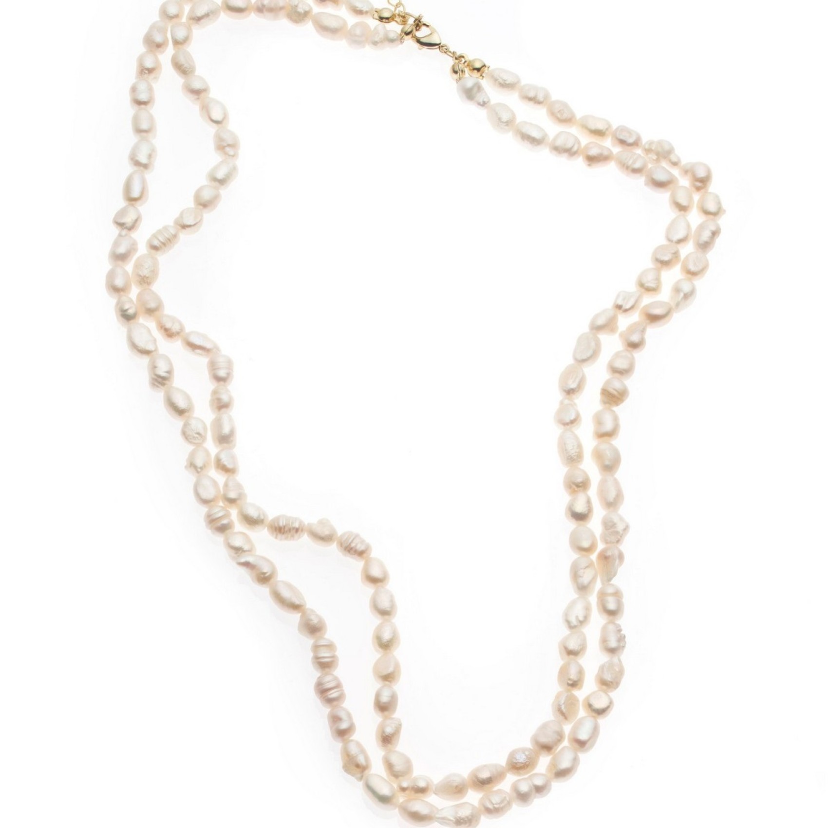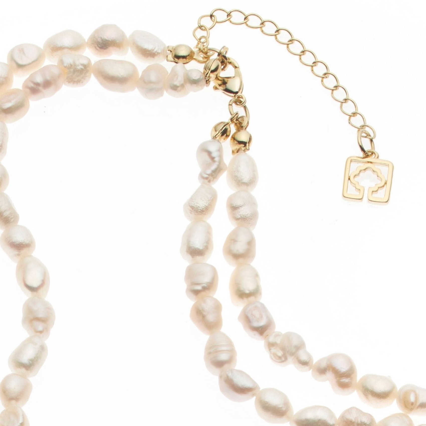 A beautiful bridal necklace, hand strung with a double row of luxury ivory freshwater pearls, finished with a gold clasp and extension chain. The perfect complement to our Dara bracelet this necklace is a lovely choice for a romantic, destination wedding.