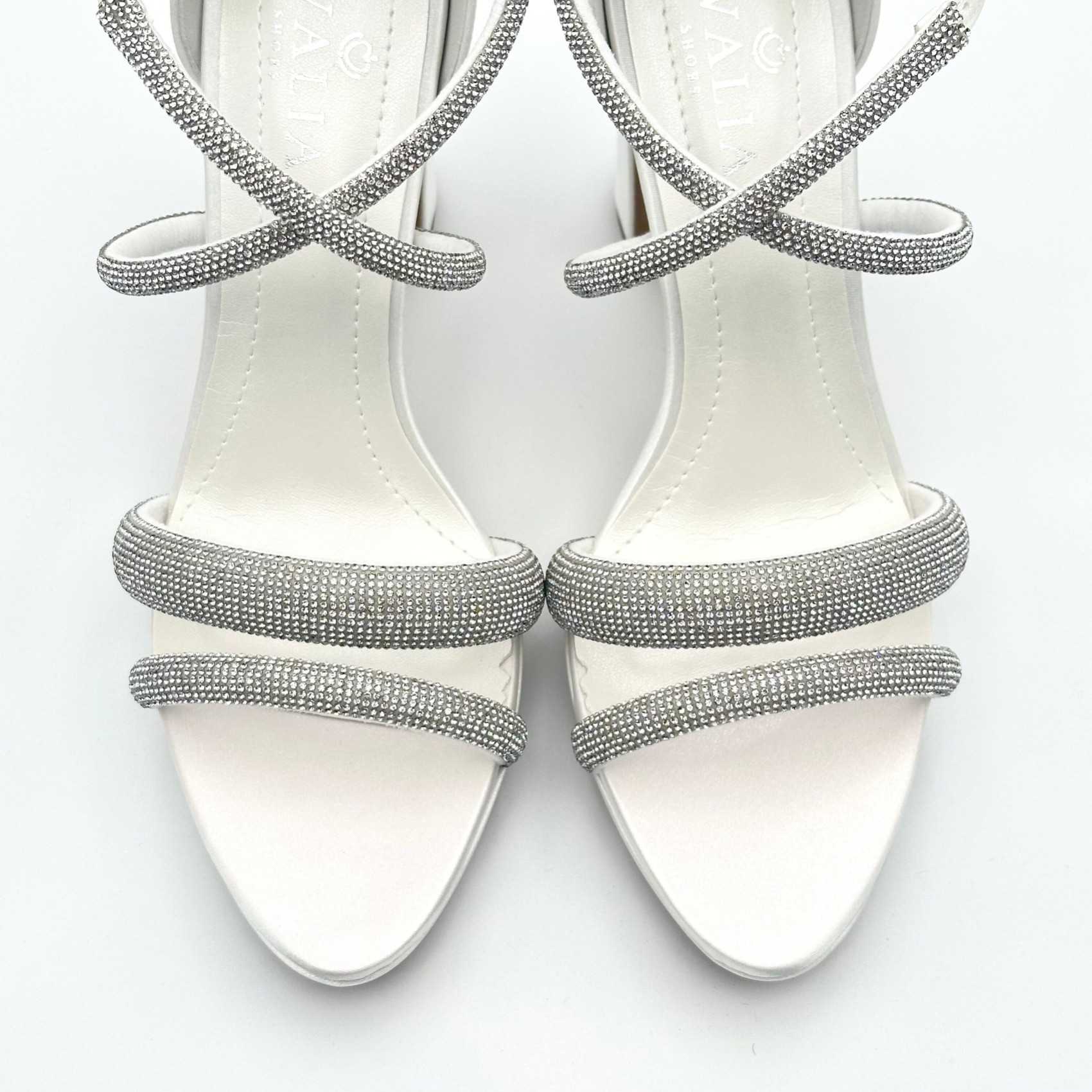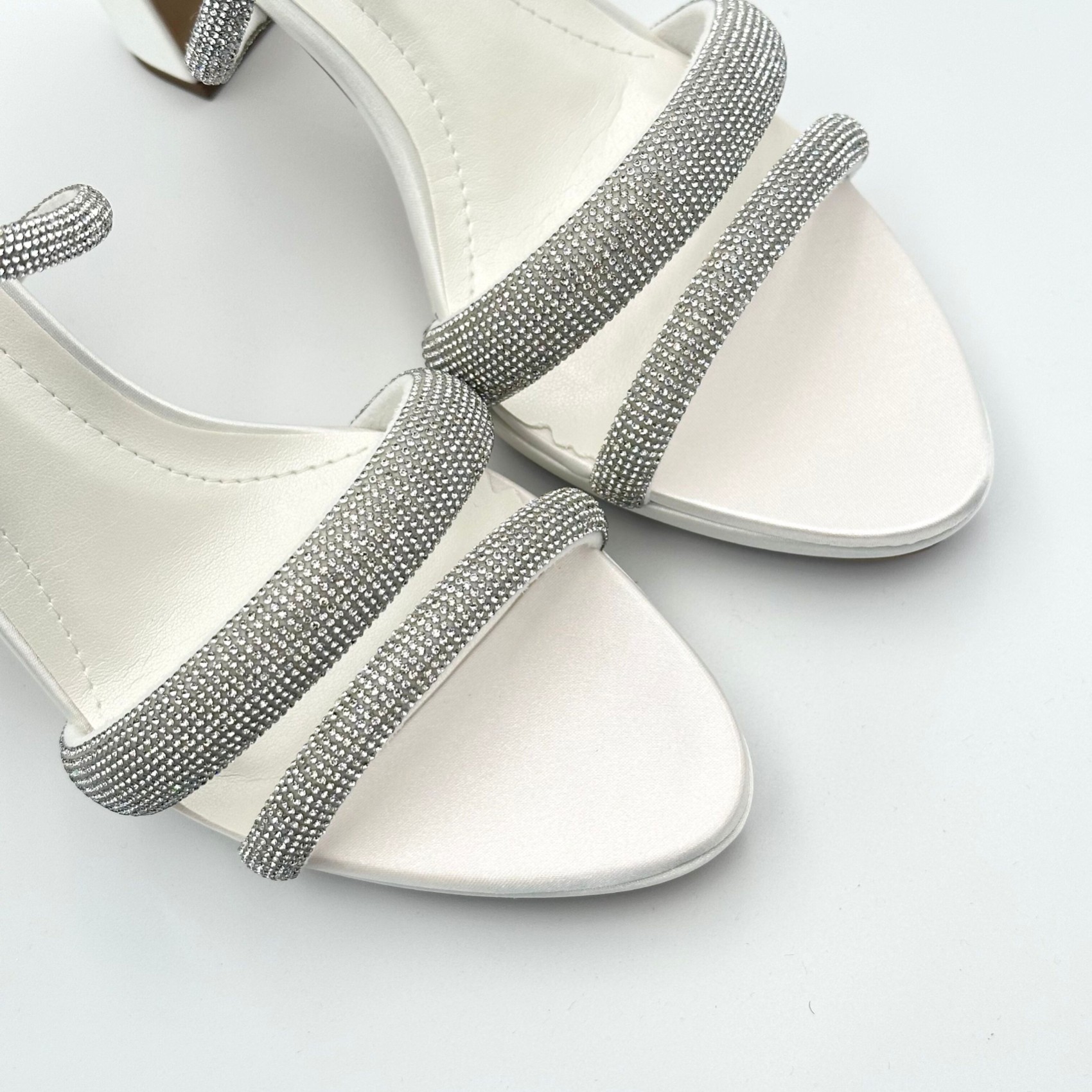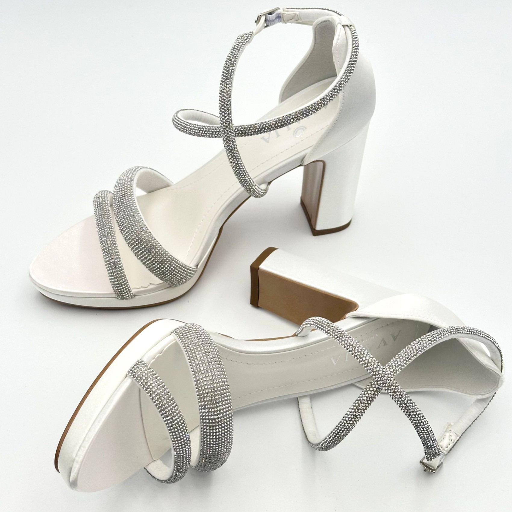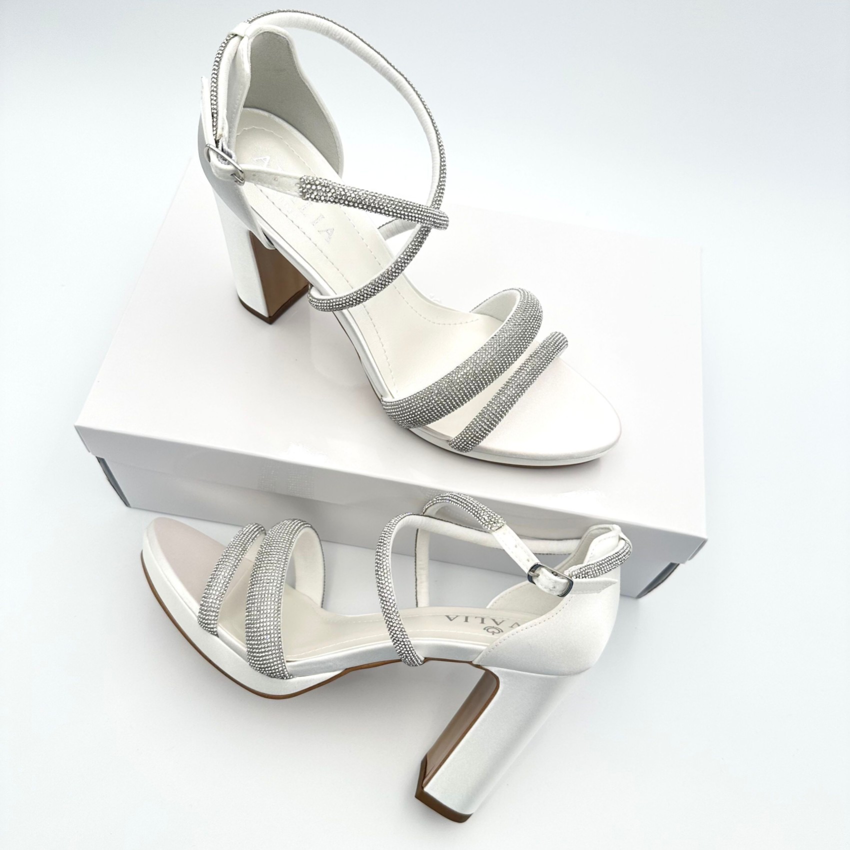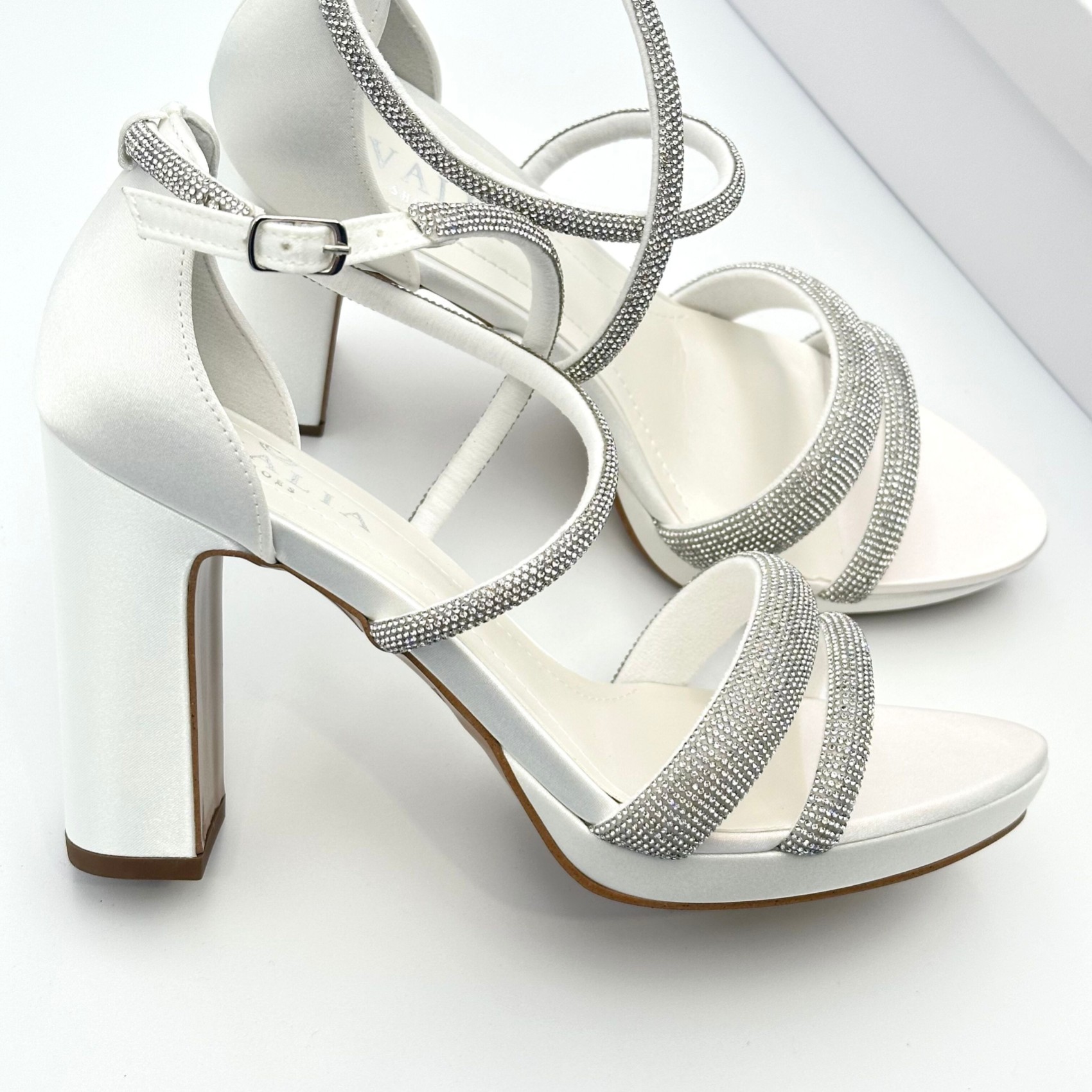 Step out in style on your wedding day in this brand new sparkly high heel sandal! Crafted from sleek ivory satin these bridal shoes feature a modern block heel, slim platform and glistening diamante straps which perfectly flatter the foot. Beautifully made for wear-all-day comfort these platform wedding sandals are the perfect way to add a touch of bridal glam to your look. A gorgeous pair of heels to wear for any special occasion after the big day too!