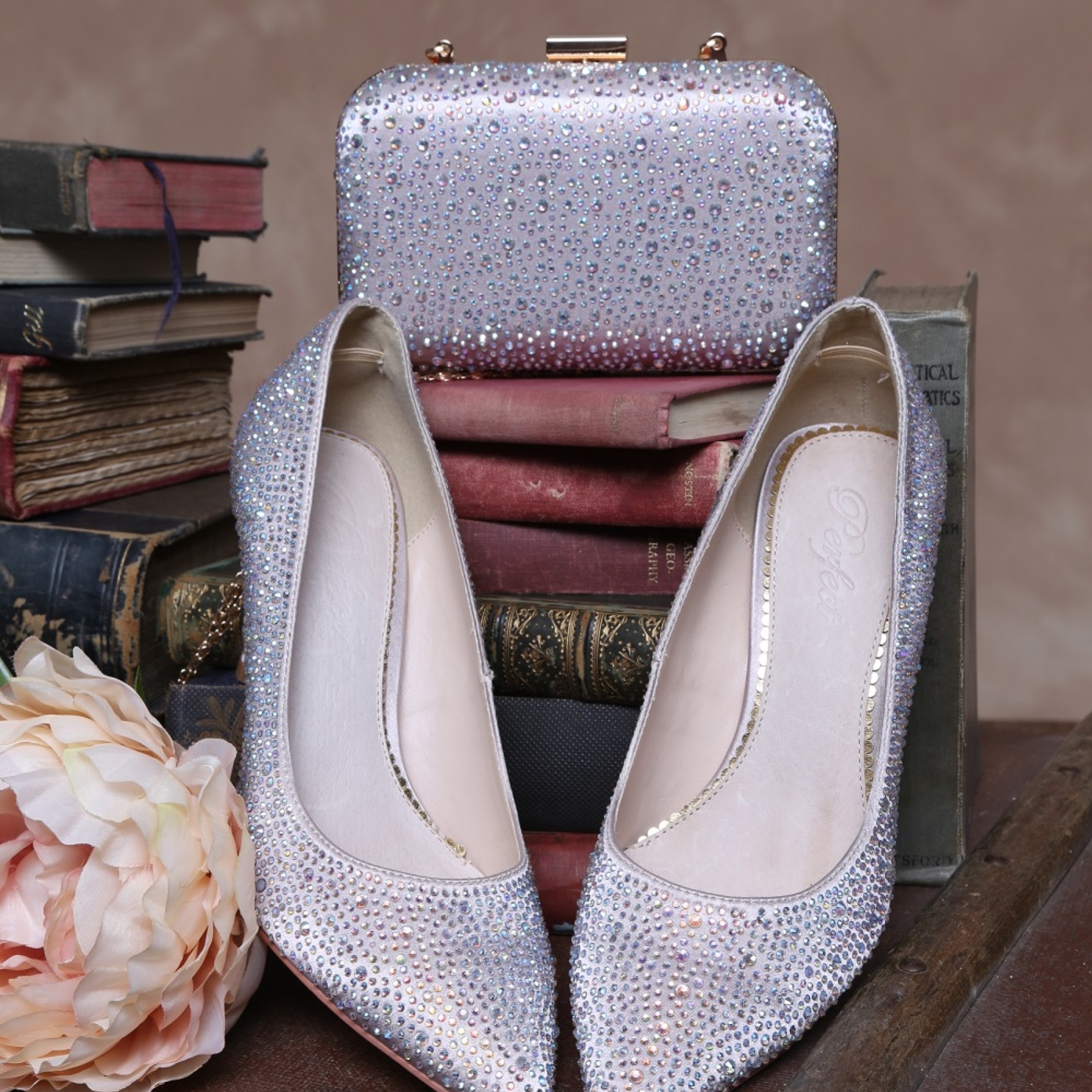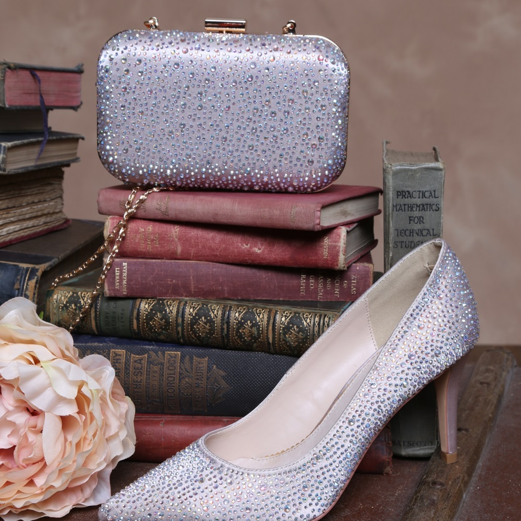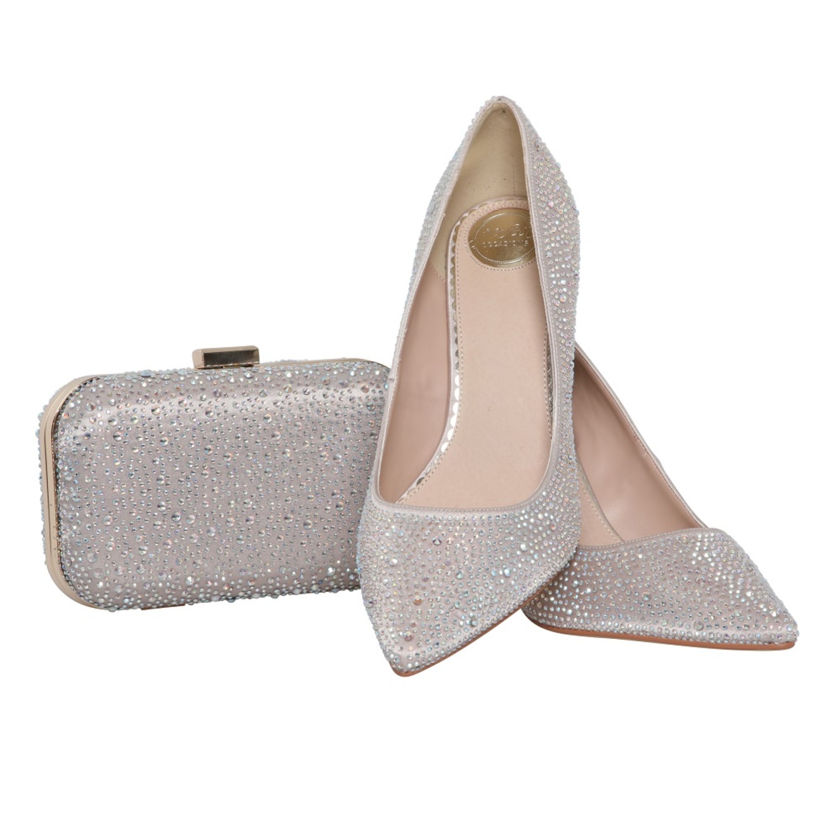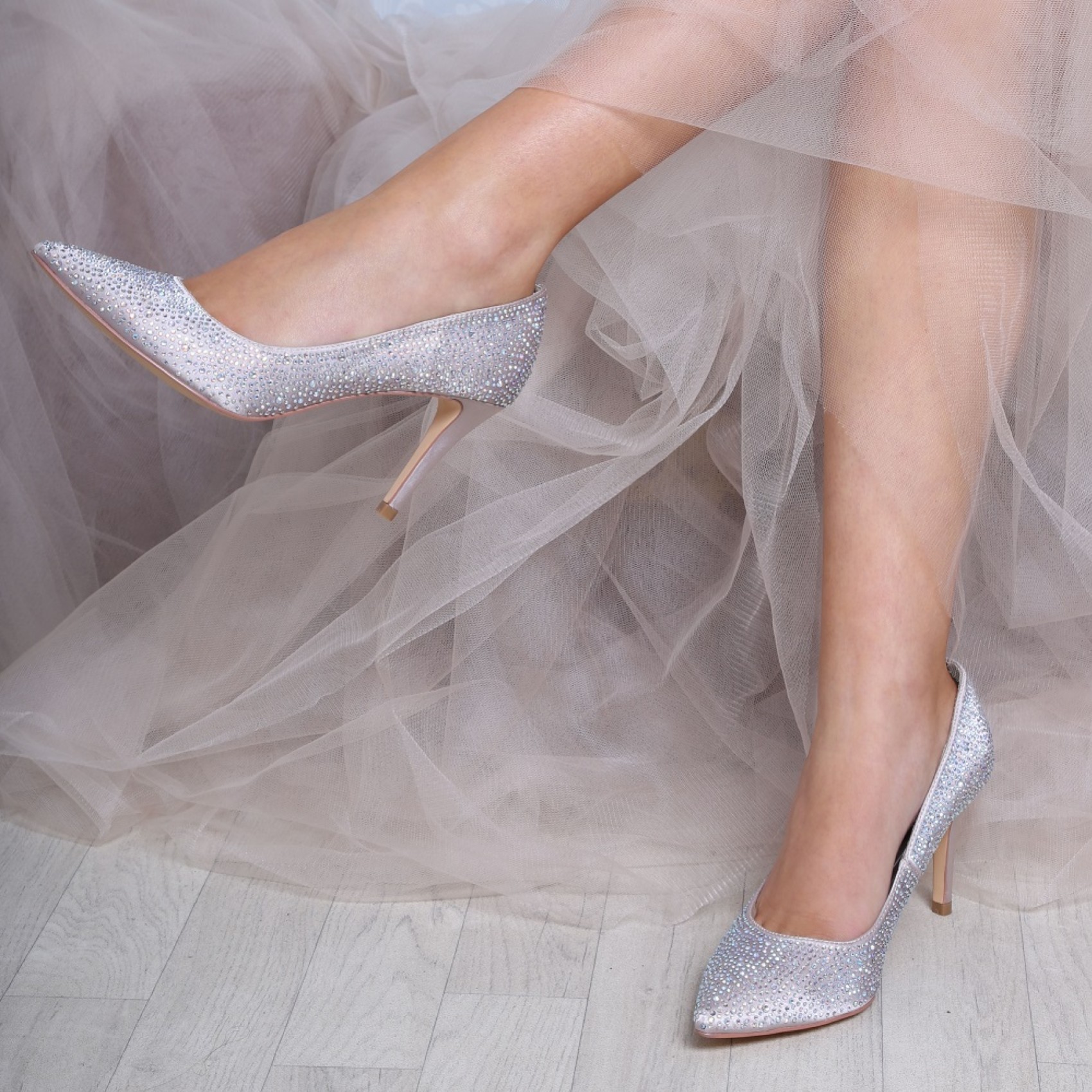 A sparkly diamante encrusted taupe satin court shoe with a delicately pointed toe, slim heel and luxury leather insole. A beautiful bridal shoe, or lovely for mother of the bride, bridesmaids or even guests! Perfect for any special occasion. Fully lined in soft leather and with extra cushioning throughout the sock to ensure you can feel as gorgeous as you look. Available in silver, nude, navy or black.