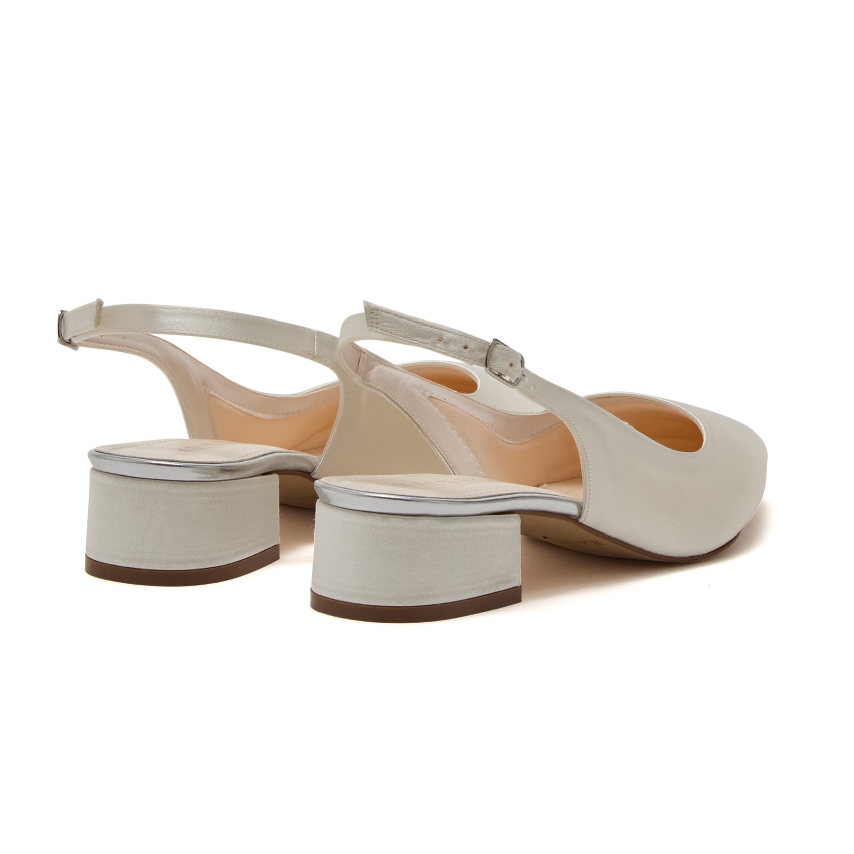 A sophisticated wedding shoe, the Faith Low slingbacks are an elegant addition to our Wide Fit collection. Made from lustrous ivory satin, they have pointed toes, buckle sling back straps, silver trim detail and a wear-all-day 3cm low heel. A great wedding shoe whether you're a bride, bridesmaid or mother of the bride. Keep it simple, or try them with our new collection of jewel, pearl, bow and feather shoe clips.