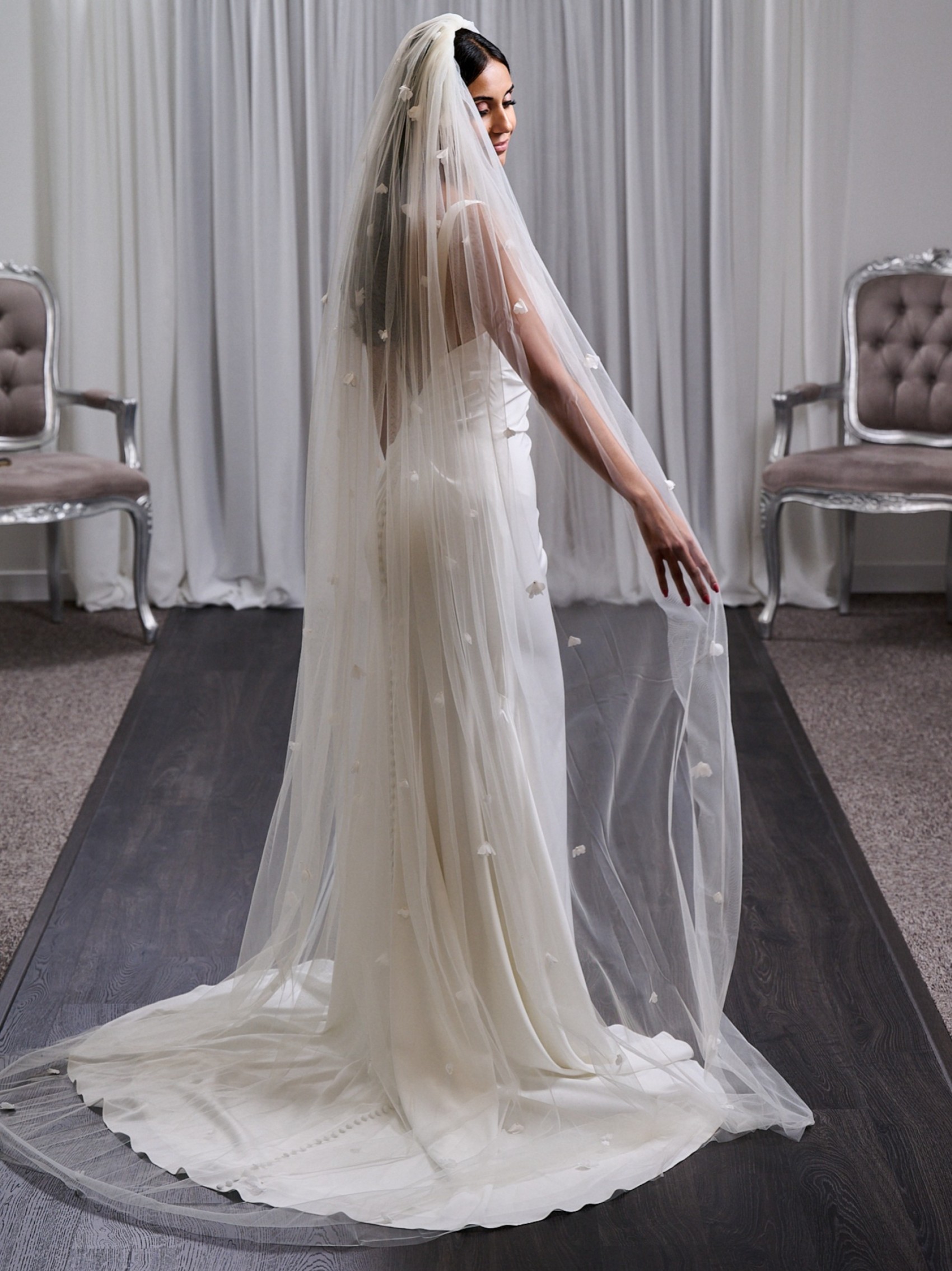 Aviemore Single Tier Italian Tulle Scattered 3D Flower Veil | LFV035